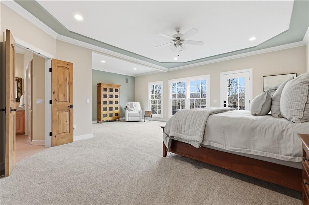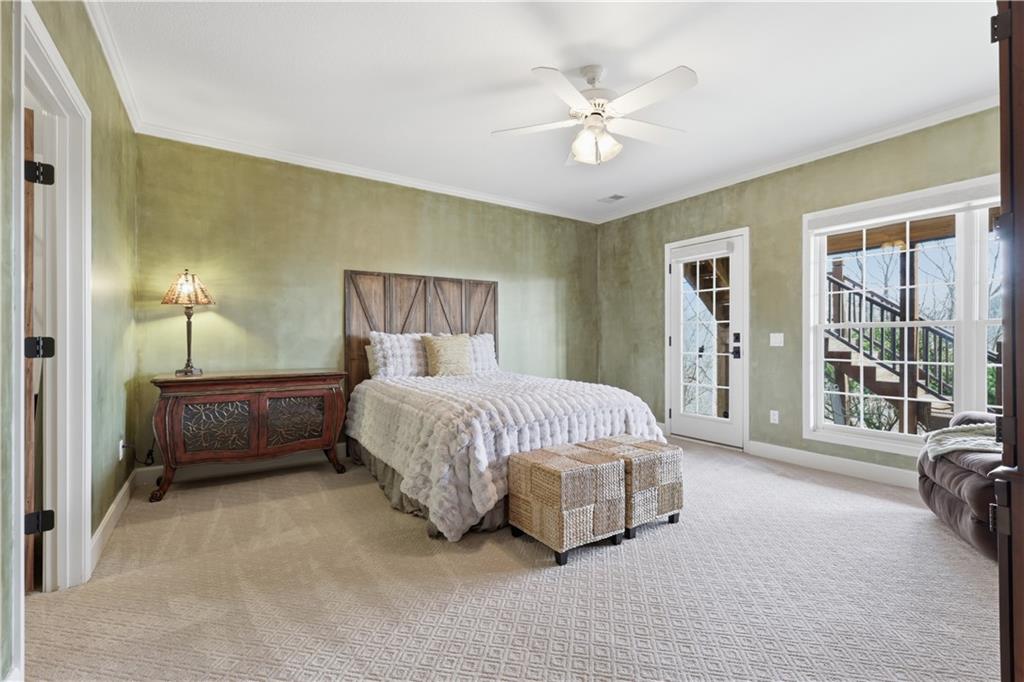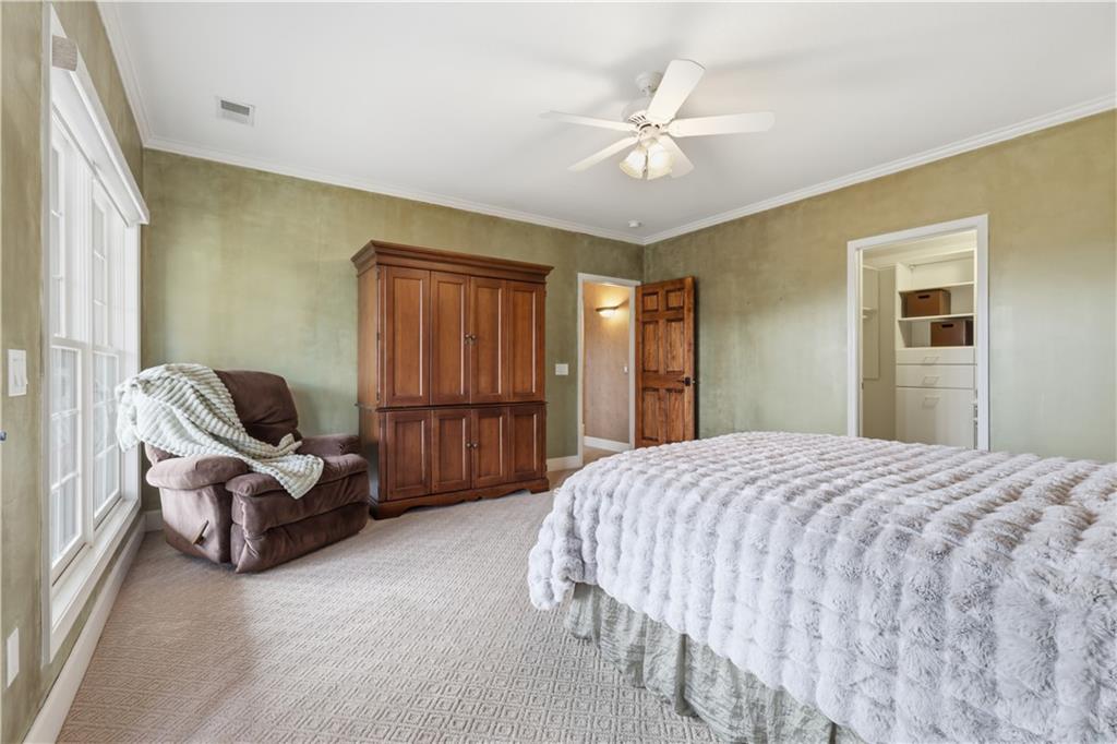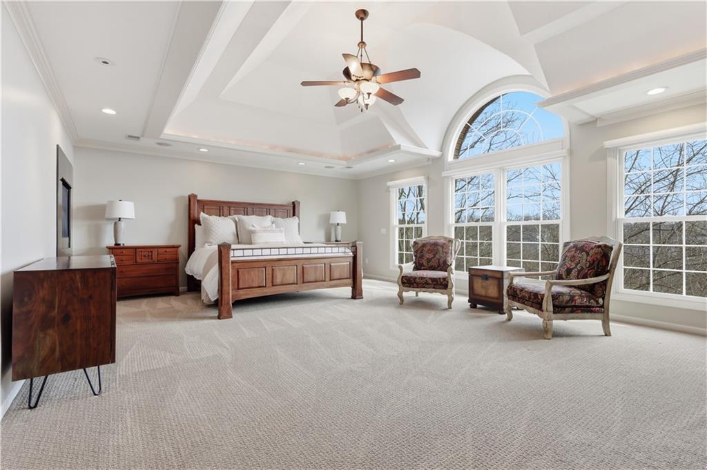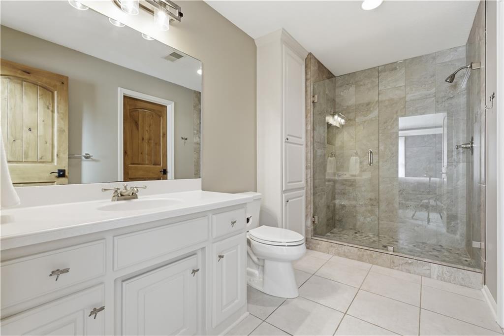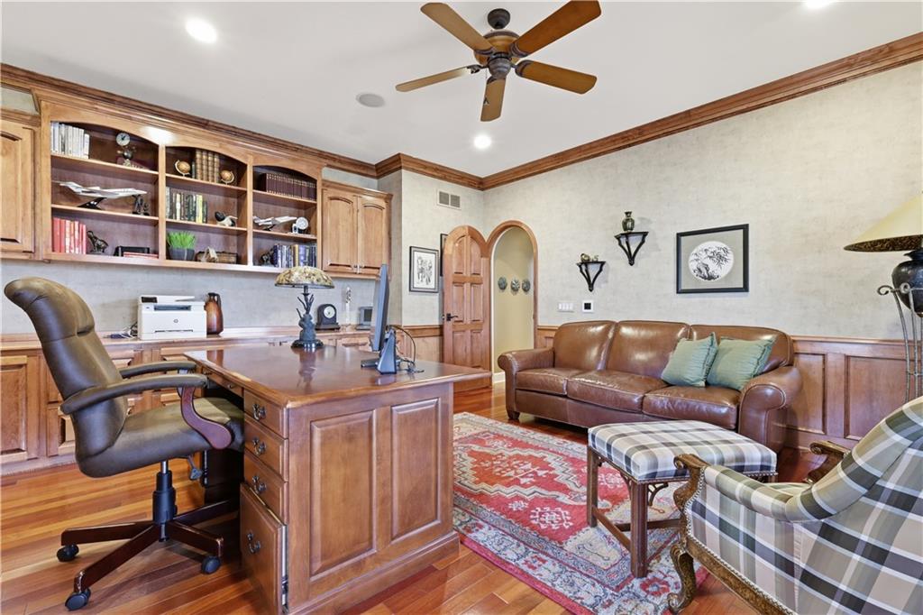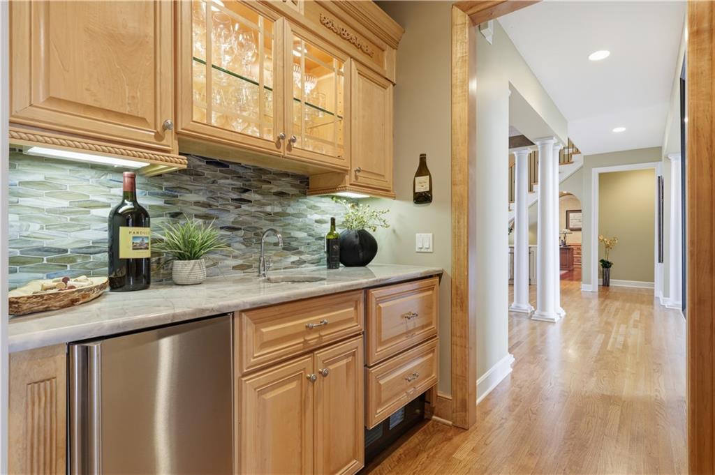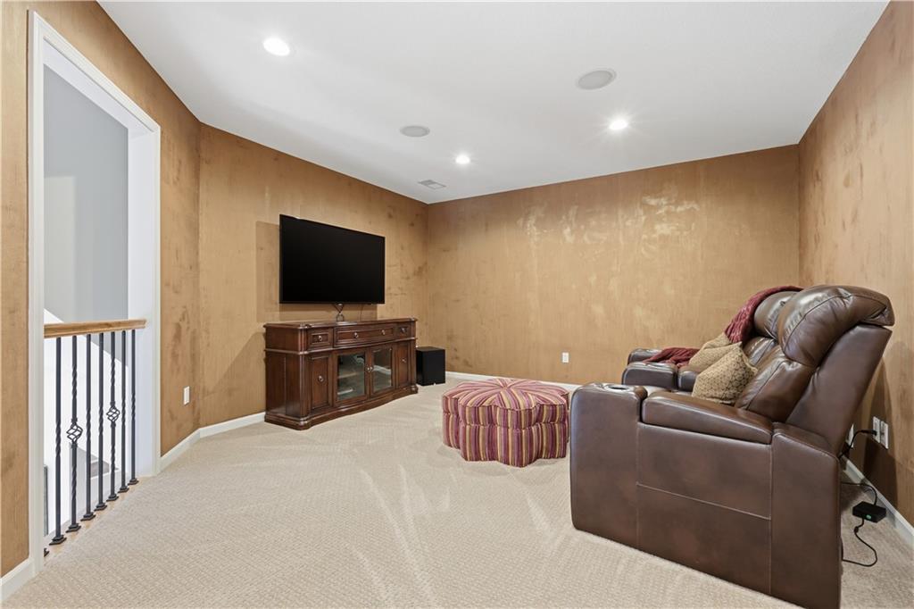 Stunning 8,355 SF estate at the end of a quiet cul-de-sac in highly sought-after Winterset Woods. Situated on a private .84-acre lot backing to maintained wooded green space and the community's 100 Acre Woods. This home offers exceptional privacy with direct trail access to the Rock Island Trail. Main level features newly refinished hardwood floors, formal dining and living rooms, a spacious family room, gorgeous sunroom, walk-in pantry, and private office with side entry front porch access. The updated kitchen showcases natural maple cabinetry, quartzite counters, new Wolf double ovens & Wolf induction range and new remaining appliances. This home offers two master suites. The main-floor master suite includes a spacious bath with Jacuzzi tub and private deck access. The 2nd level master suite has cathedral ceiling framing tree top views. Bath has heated tiled floor and a Jacuzzi River Bath. Closets feature California Closet design. The remaining 2nd level offers a loft and 2 suites with private baths, highlighted by Alder hardwood doors and Renewal by Andersen windows. The walkout lower level is built for entertaining with a large rec room, gas fireplace, full bar, billiards area, guest suite with full bath, second laundry, custom wine cellar (1,000+ bottle capacity), additional rec space, and nearly 1,400 SF of storage. A storm shelter/vault is located beneath the front porch. Outdoor living includes multiple decks, screened porch, covered patio with finished dry ceiling and shiplap detail, gas fire pit, ornamental iron fencing, and additional dry storage below the south deck. The 4-car garage (998 SF) provides ample space. Roof replaced in 2020 with copper detailing. Perfect location with easy proximity to I-470. Just minutes from Lowenstein Park, The Streets of West Pryor, and Summit Woods.