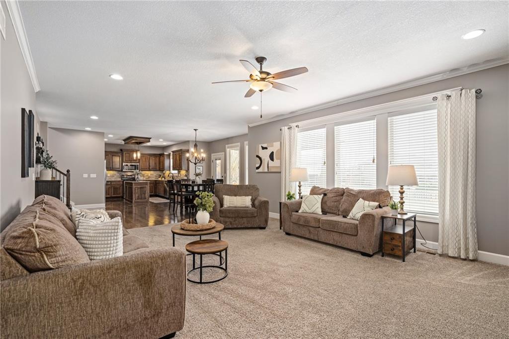 This show-stopping 5 bedroom/5 bath home is in the heart of south Olathe. Open spaces/open concept are theme of this home. The kitchen is set up perfectly for entertaining with walk-in AND butler's pantries adjacent to the large dining space and enormous living room (finally the space that fits EVERYONE). OR go out back, w/its covered patio, great for outdoor entertaining or watching the kids have plenty of space to run in the large, fenced yard. Tired from all the entertaining? Make your way upstairs to the well-appointed master suite, with its own covered deck! Soak in your huge tub, take a shower in the stand-alone shower, and no sharing with two large sinks and built in cabinets. Enjoy not one, but two closets with MORE built-ins including vanity/ dressing table. But, what about the kids? Don't worry, they will be thrilled with two additional bedrooms sharing jack-n-jill bathroom and 3rd bedroom with its own on-suite all on the second floor. No more fighting over bathrooms! This house isn’t done showing off…head downstairs to a finished basement with built-ins galore, bar area, along with a full bath and 5th true bedroom! Oh, and ALL bedrooms have WALK-IN closets! But having 5 bedrooms doesn't mean you give up office space; there is a dedicated office on the main floor! 3-car garage will wow you with its extra-long drive, full driveway for that 3rd car (no more running over the grass), 23' depth bay (that truck/large SUV doesn't have to sit outside), and 220-outlet ready for an EV charger! Being in the Springhill School District allows your kids to enjoy a smaller district with all the benefits of living in the city. Only 15 min WALK (~1/2 mile) to assigned Springhill Elementary AND Middle Schools OR less than 8 min drive to TWO private school options. Stonebridge amenities include FOUR pools, FOUR playgrounds, tennis & pickleball courts, clubhouse, fitness center, AND miles of walking trails! Not only a new home; but a lifestyle upgrade!