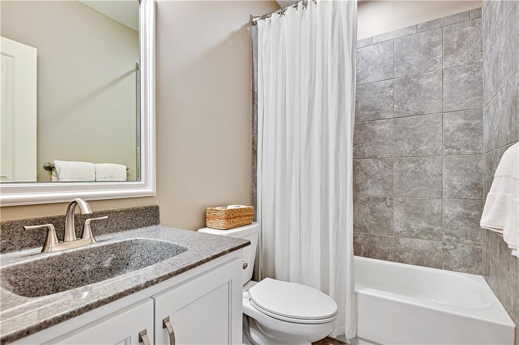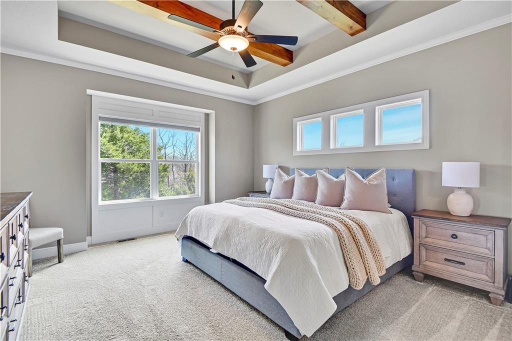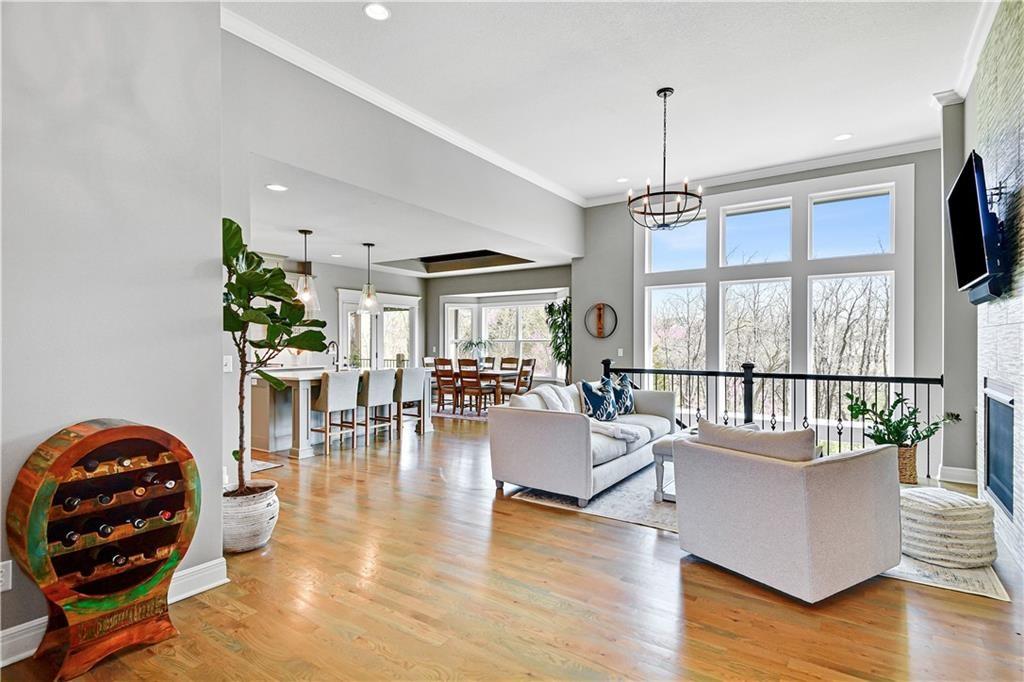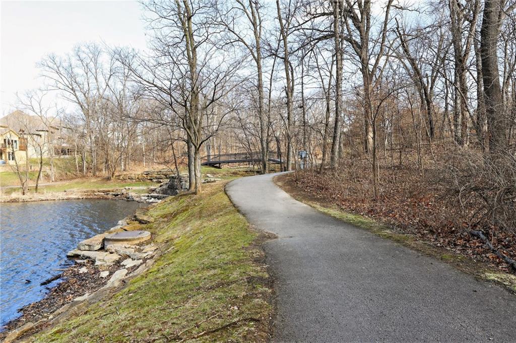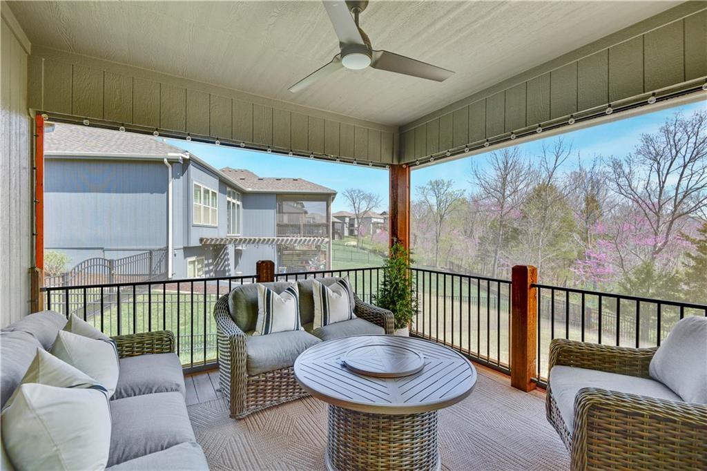 Stunning Reverse 1.5 Story in a fantastic neighborhood with fabulous amenities. This home backs to green space for privacy and views! Walk in to a wall of windows that take in the beautiful treed green space. There is an office or guest room at the front of the home and full bath. The primary bedroom is a delightful retreat with high ceilings & great views and a spacious and modern ensuite with separate tub & shower, double vanities & a huge walk-in closet. The kitchen is great for entertaining with an oversized island, neutral colors and classic design choices. You will fall in love with the covered deck that was greatly improved with an automatic, remote controlled MagnaTrack rolling screen that is engineered to withstand hurricane force winds and with the screen woven so tight it actually adds privacy (you can easily see out, but you can't see in), it blocks the sun, wind, bugs, and creates such a comfortable atmosphere that the sellers use that space year round. The walkout lower level has a wet bar area which makes the recreation room truly functional. There are two more guest rooms & a full bath and two separate storage areas. The back yard is fenced with iron fencing, so no maintenance, and strong enough to withstand a tree falling. It has 3 gates and is built in sections making it ideal for the long term. The garage floor has been epoxied. Integrated water softener system stays. Alarm system stays including window sensors. Interior freshly painted with highest grade of Sherwin Williams paint. Close to the pool & tennis, but very quiet street as there is not a lot of through traffic. Deck & railings were stained recently. All shower heads were replaced and kitchen faucet was replaced. Home has been professionally cleaned every 2 weeks and windows have been professionally cleaned inside and out every spring. Neighborhood amenities include multiple lakes/ponds with live fishing, hiking/biking trails, playgrounds, 2 pools, tennis & pickle ball court...