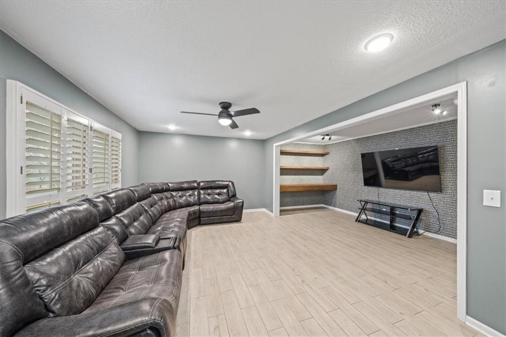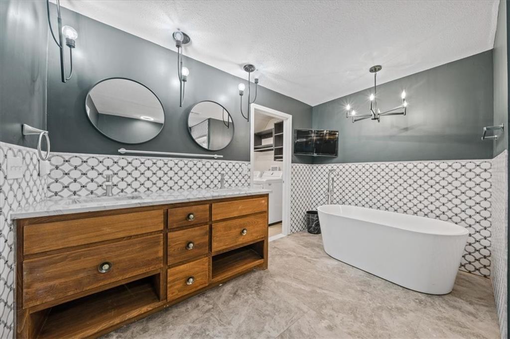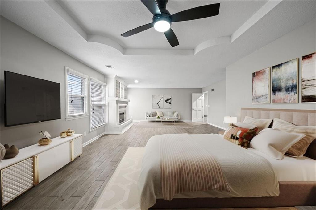 Welcome to this stunning 4,000+ sq ft home, previously featured on HGTV's Bargain Mansions! Nestled in the highly sought-after Lakewood community, this exceptional 4-bedroom, 3.5-bathroom residence offers thoughtful design, high-end finishes, and everyday functionality across three beautifully appointed levels. The Main Floor features an extra-large family room with two built-in desk areas. A true chef's kitchen with 8-burner gas range, double oven, oversized island, custom coffee/appliance station, walk-in pantry, banquette nook w/bench seating and a fireplace make this extra-large space perfect for entertaining. A convenient powder room & main-floor laundry room complete this level. The Upper-Level features an enormous primary suite w/ fireplace and seating area. The spa-inspired bathroom showcases a double vanity, soaking tub, an oversized walk-in shower and a large walk-in closet with convenient laundry area. Three additional bedrooms and a full bathroom complete the upper floor. The Lower Level is designed for entertaining - featuring a well appointed wet bar, spacious recreation room with pool table and sauna, and a versatile bonus room with walk-in closet & full bathroom — perfect as an office, gym, or guest suite. A third laundry room adds convenience. Step Outside to a large lot featuring an expansive deck, fully equipped outdoor kitchen and bar, a curtained gazebo for alfresco entertaining, and a relaxing hot tub — your private backyard retreat awaits! Lakewood amenities include boating, pickleball, trails, pools, playgrounds and more. With award-winning schools & easy access to shopping, dining, and highways — this home truly has it all!