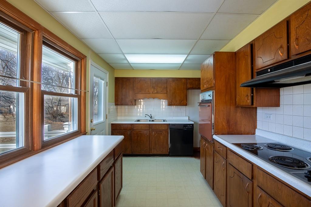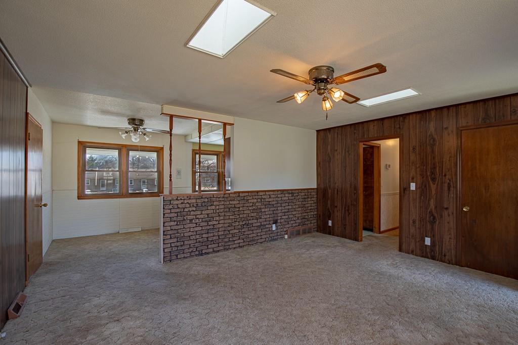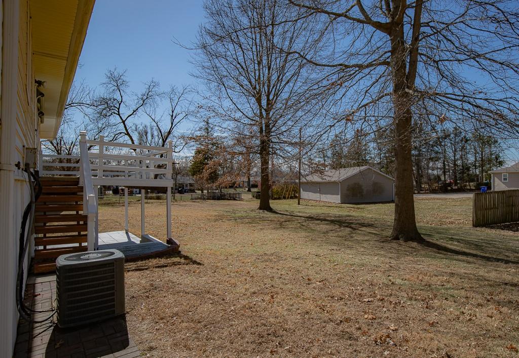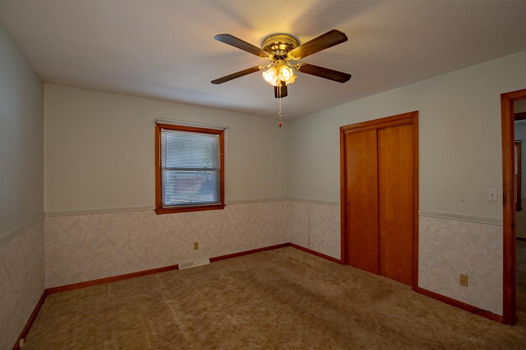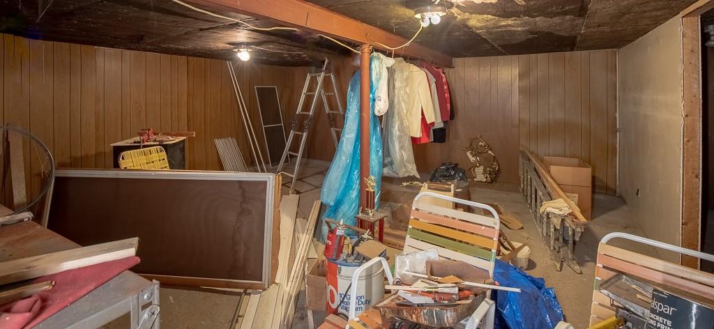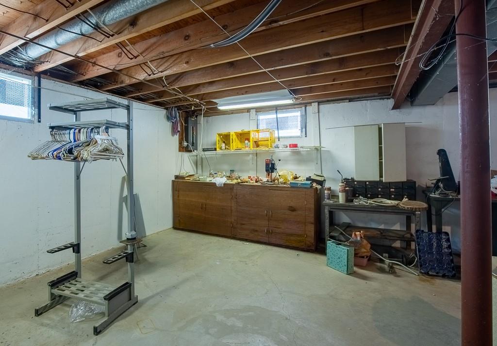 Well built Ranch with vinyl siding on approx 1/3 acre. We believe there are wood floors under the carpet. Nice size bedrooms, Deck off Kitchen which has extra cabinets with lots of work space, pantry with drawers, Large rec area with walkout door to back yard and patio, Gas hook up- for bar b que on lower level. large storage area under the garage, work shop area