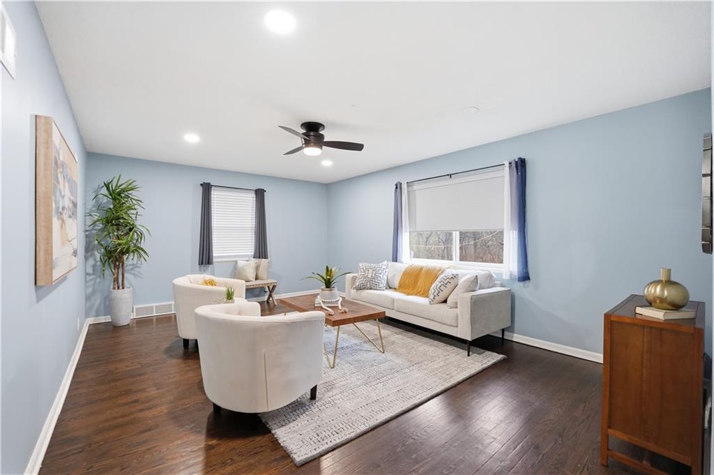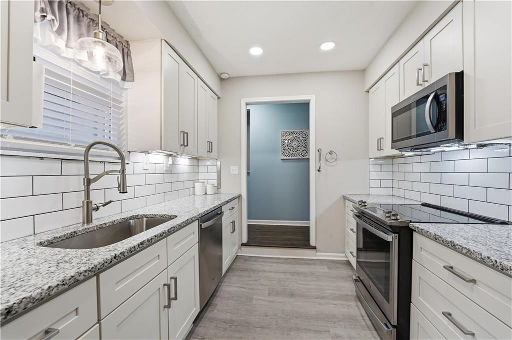 True Ranch with gorgeous updates in Gladstone!! This 3 bed, 2.5 bath home with NEW ROOF, NEW AIR CONDITIONER AND NEW WATER HEATER backs to trees for privacy. Step inside to an updated kitchen with granite countertops, subway tile backsplash, wood floors, and upgraded SS appliances. Convenient dining room or additional family room right off the kitchen has cozy fireplace and overlooks deck and trees beyond. Main level also features large great room, primary suite with upgraded tile bath and 2 additional bedrooms with upgraded adjacent bath. You'll love the full, finished walk-out basement with tile fireplace, family room, half bath, and additional space for extra bedroom or hobby room. Newer windows, electrical panel, and original hardwood, LVT and tile flooring throughout. Relax on your back deck with stairs down to large, fenced backyard that backs to trees, park, and trail! Laundry hookups both on main level and in the basement. Enjoy convenience to Downtown KC, KCI airport, restaurants, Hobby Hill Park & nearby trails!