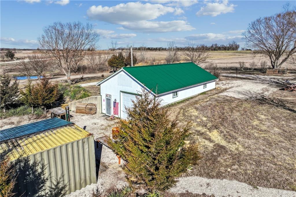 Dreaming of the perfect hobby farm location close to the city? Look no further, almost 10 rural acres will provide gorgeous sunrise and sunset views almost daily. Quiet and peaceful nature sounds are at your doorstep, but still just a quick drive to small-town conveniences in Ottawa, Osawatomie & Paola. How about a stocked pond for the fishing enthusiast? Yes, and there's even room to add another in the future. Fully connected with rural water, a septic system and a newer 200 AMP electric panel in this 26ft x 48ft concrete foundation Studio/Garage/Workshop which was reconstructed in 2018. Plus, there is a BONUS 8ft x 40ft rustic bunk-cabin, created & designed to remind the seller of their family's cherished lake retreat. Also attached to the bunk-cabin is an 8ft x 40ft cargo container, room for plenty of recreational vehicles or extra storage. Rolling meadows, garden space galore and hay fields too. Seller had such a prolific garden that produced over 1500 pumpkins one fall. There's an additional large barn/shed in the rear of the property ideal for storing farm equipment. Picture perfect views at this perfect get-a-way, less than 45 minutes to the KC metro. There's 2 extra RV hook-ups so invite your friends down for the weekend to enjoy this paradise with you. Seller has added lots of graveled driveways, plenty of parking spaces and a gated entrance for privacy. Whether you are looking for a recreation place on the weekends or a haven to build your future home, this homestead has just gotten started and is ready for you to finish it your way.