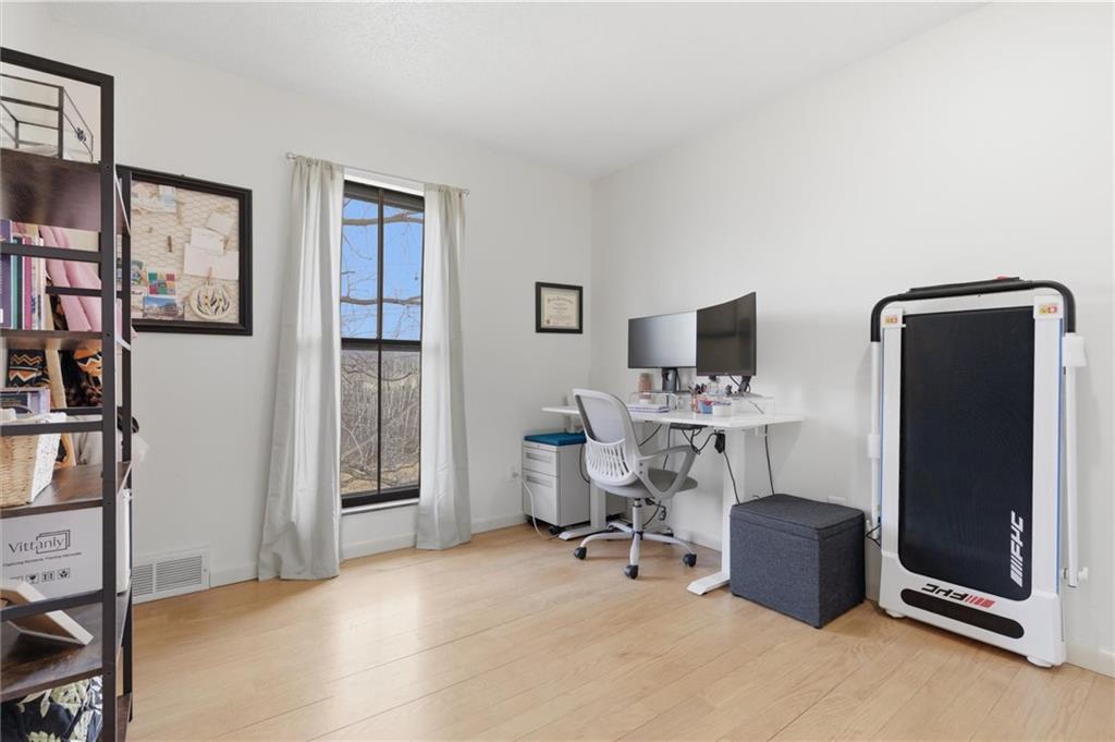 Rare end-unit opportunity in Hills of Walden offering privacy, comfort, and a highly desirable 2-bedroom, 2-1/2-bathroom floor plan. Located in Kansas City, MO within the Park Hill School District, this townhome blends warmth and functionality throughout. Oak floors in the living room complement the oak staircase and fireplace, creating a timeless and inviting main living space, while a convenient half bath serves guests on the main level. Upstairs features two bedrooms and a full bath, and the finished basement adds valuable additional living space along with a second full bathroom — ideal for hobbies, guests, or a quiet space. Step outside and enjoy the back deck or relax on the patio enclosed by a privacy fence. A one-car detached garage space provides secure parking and extra storage. Residents also enjoy HOA amenities including pool, tennis courts, and clubhouse access, making this home an easy choice for low-maintenance living with added lifestyle perks.