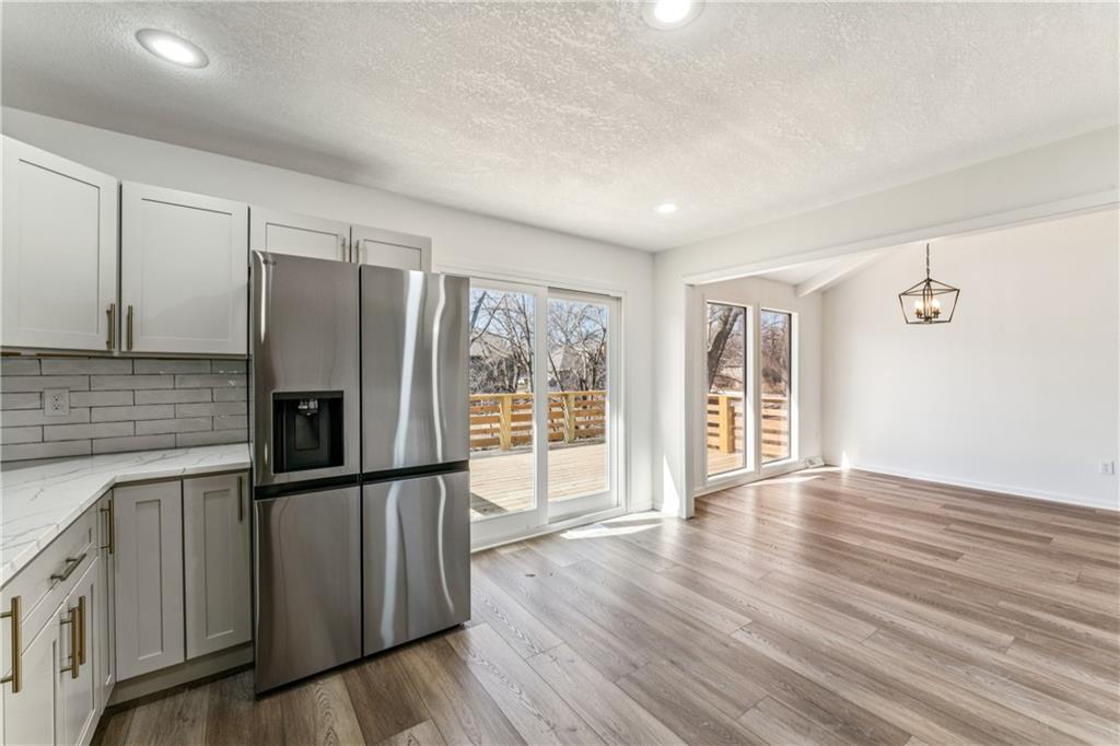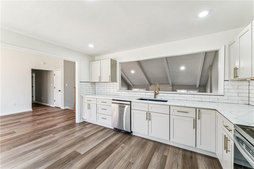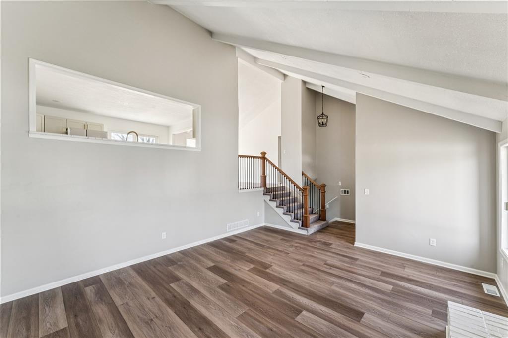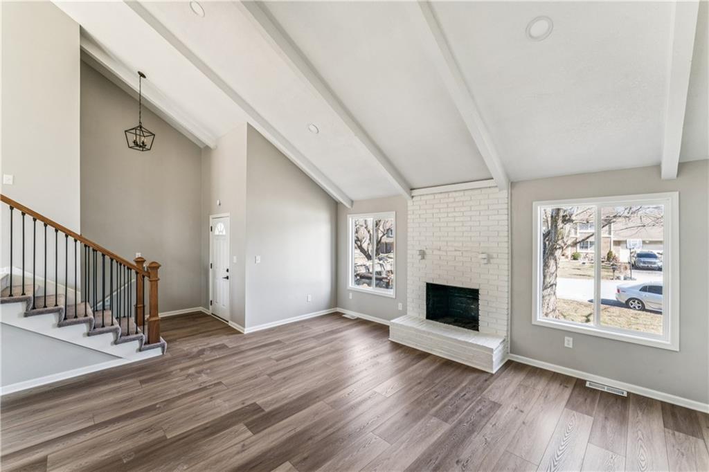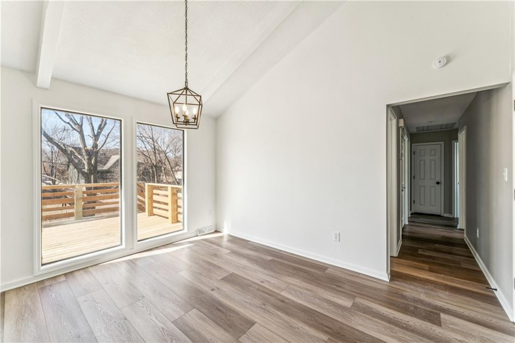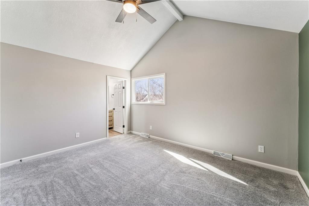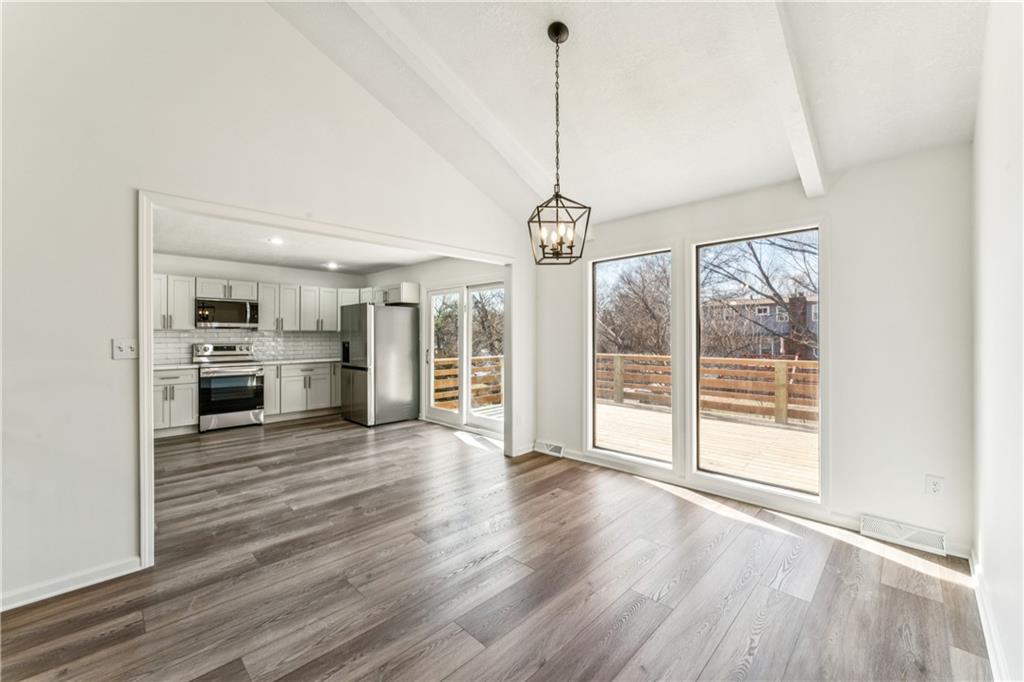 Style, space, and serious wow factor. This beautifully refreshed home features soaring vaulted ceilings in both the living room and primary suite, creating an open, airy feel throughout. The gorgeous kitchen steals the show with sleek cabinetry, stainless appliances, and modern finishes that feel straight out of a design magazine. Enjoy cozy evenings by the fireplace, entertain on the brand new deck, and appreciate the fresh updates and move-in ready condition from top to bottom. With new flooring, updated spaces, and great natural light, every room feels bright and welcoming. Conveniently located with easy access to shopping, dining, and highways, this home offers comfort, style, and everyday convenience all in one. Homes with this much personality don’t come around often.