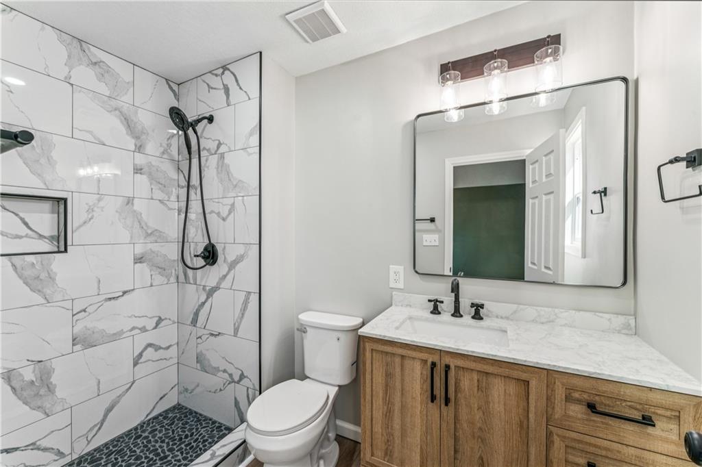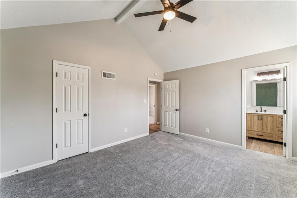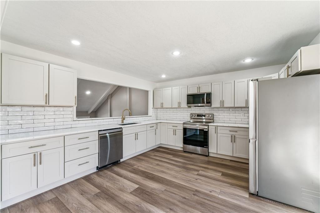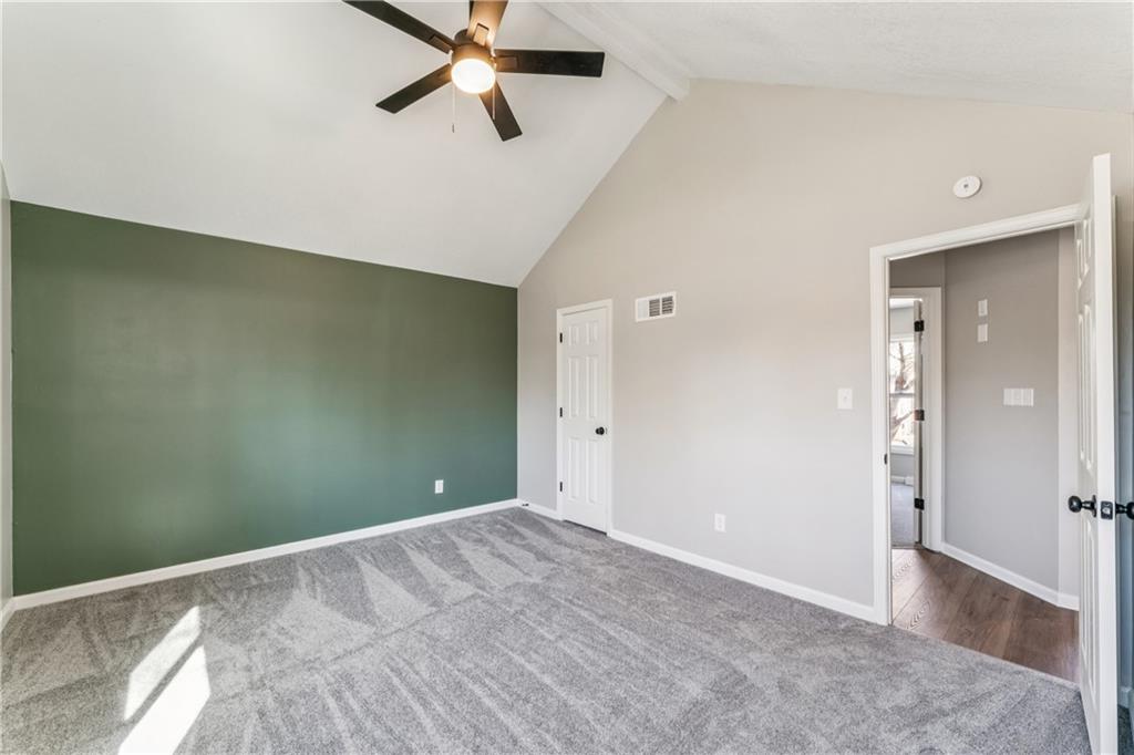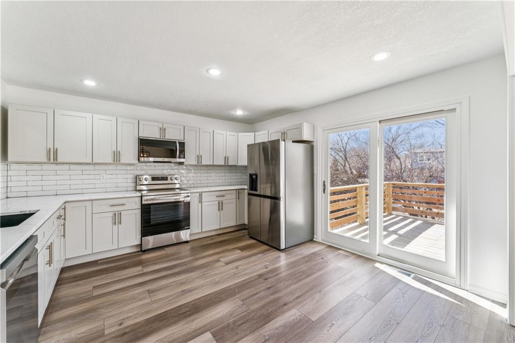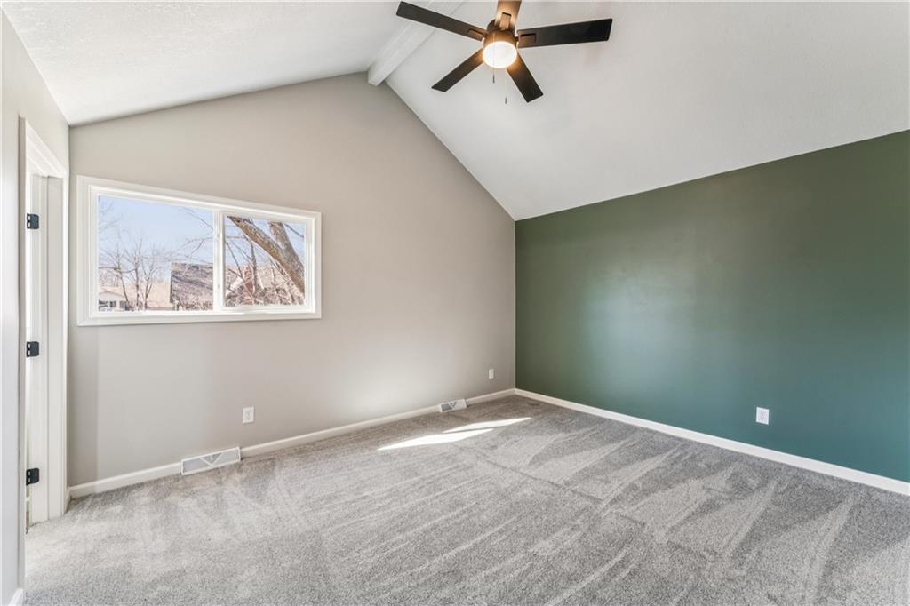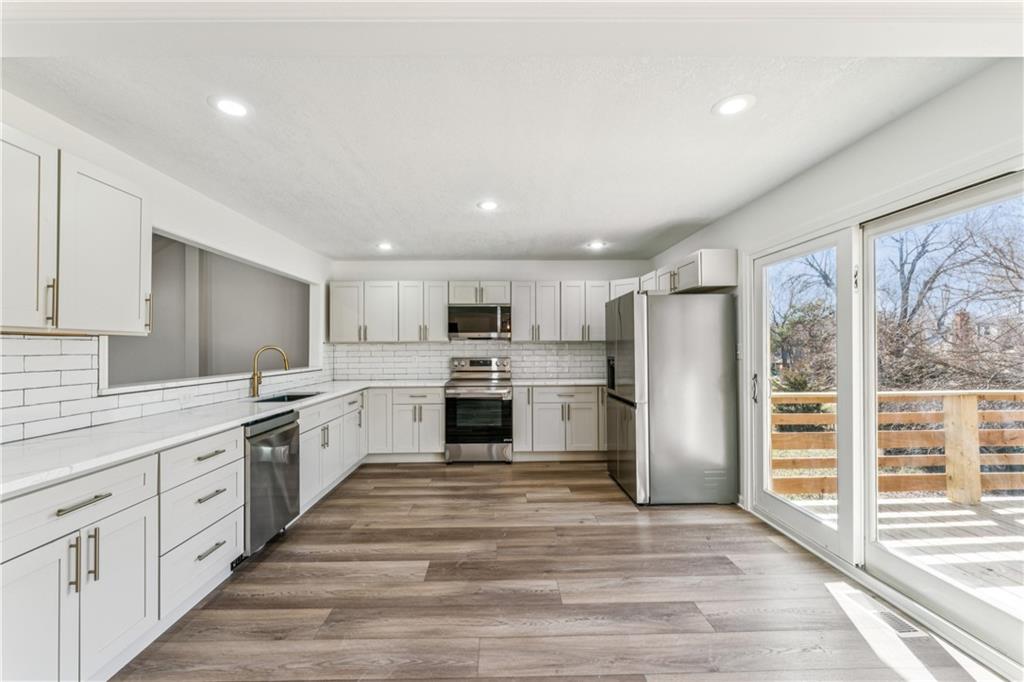 Style, space, and serious wow factor. This beautifully refreshed home features soaring vaulted ceilings in both the living room and primary suite, creating an open, airy feel throughout. The gorgeous kitchen steals the show with sleek cabinetry, stainless appliances, and modern finishes that feel straight out of a design magazine. Enjoy cozy evenings by the fireplace, entertain on the brand new deck, and appreciate the fresh updates and move-in ready condition from top to bottom. With new flooring, updated spaces, and great natural light, every room feels bright and welcoming. Conveniently located with easy access to shopping, dining, and highways, this home offers comfort, style, and everyday convenience all in one. Homes with this much personality don’t come around often.