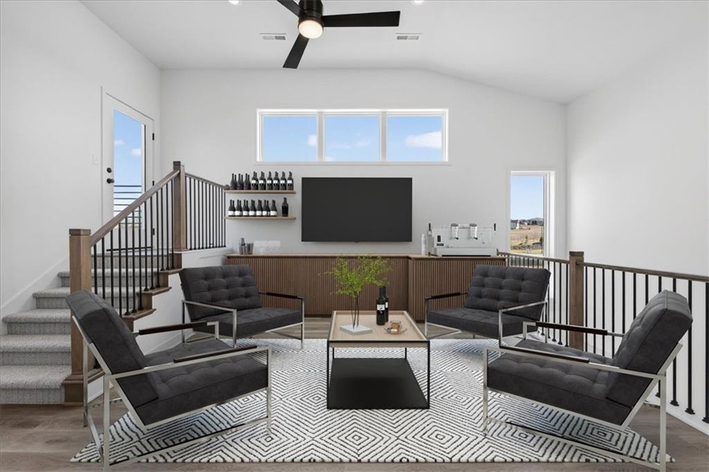 Discover refined, low-maintenance living at The Cliffs of Watercrest, where modern design and everyday convenience come together beautifully. This exclusive 1.5-story townhome blends contemporary style with functional comfort while offering a truly elevated lifestyle. Inside, soaring 20-foot ceilings and an open-concept layout create a bright, airy atmosphere filled with natural light. The spacious living area flows effortlessly into a functional luxury kitchen with premium finishes—perfect for hosting gatherings or enjoying a quiet evening at home. The main-level primary suite serves as a private retreat, featuring a spa-like bath with dual vanities and a generous walk-in closet and ensuite laundry. Upstairs, a versatile loft space leads to your own private rooftop terrace—an ideal setting for morning coffee, sunset views, or entertaining guests. Two additional large secondary suites each with their own walk-in closets ensures comfort and privacy for family or visitors. An unfinished walkout basement provides abundant storage and endless opportunities to customize the space to fit your needs. Ideally situated just minutes from premier shopping, dining, and major highways, The Cliffs of Watercrest offers the perfect balance of accessibility and upscale living. With low-maintenance services included, you can truly embrace a lock-and-leave lifestyle. ***Residents of the Cliffs also receive access to the amenities of WaterCrest Landing including the Pool, future Pickleball Courts and Play Area*** The Cliffs townhomes are also a perfect opportunity for investors looking to build their portfolio and take advantage of an exciting opportunity in a rapidly BOOMING area of Johnson County. Schedule your showing today!