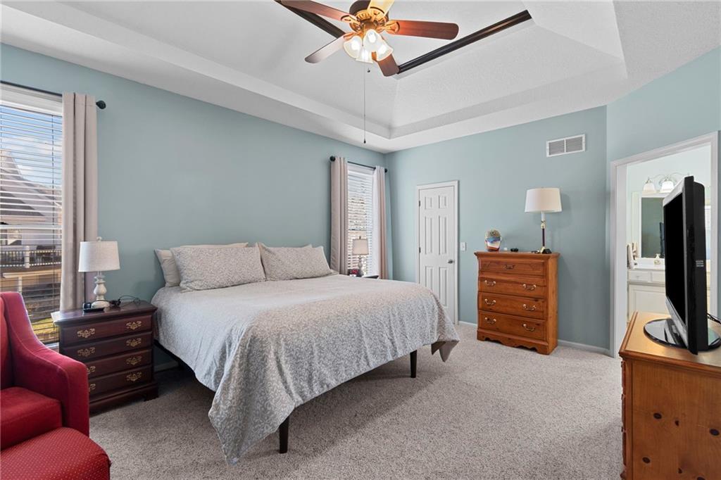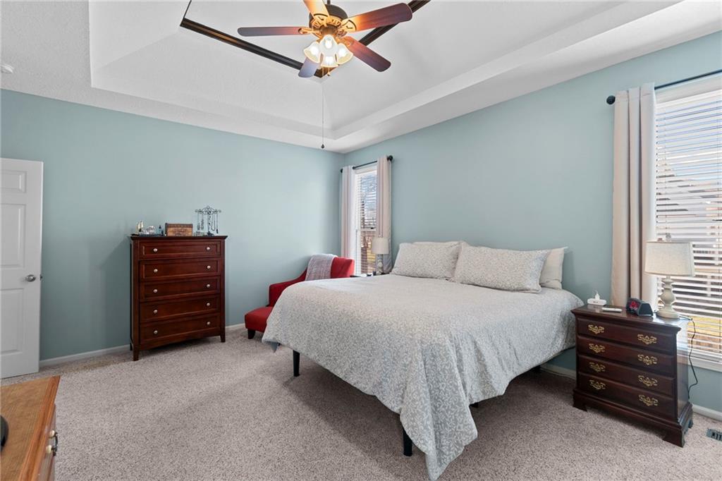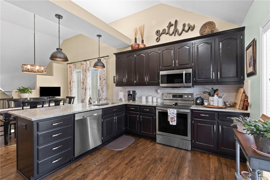 Welcome to this beautiful 4-bedroom, 3.5-bathroom home! As you enter, you'll be greeted by an updated tile entry that seamlessly flows into the spacious living areas. The entire home features newer fixtures and updated carpet, providing a fresh and modern feel. The kitchen is a highlight, showcasing a new backsplash and appliances that are all less than four years old. The master suite offers a private retreat with a newly tiled bathroom and shower and two walk in closets. The hall bath has also been updated with new tile. Additional features include a non-conforming bedroom in the basement, a walk-out basement perfect for entertaining, and wood floors that have been refinished with a scratch-resistant poly for durability. The HVAC system was replaced in Spring 2025. Close walking distance to community pool and play are. Nearby highway for easy access to anywhere in the metro.