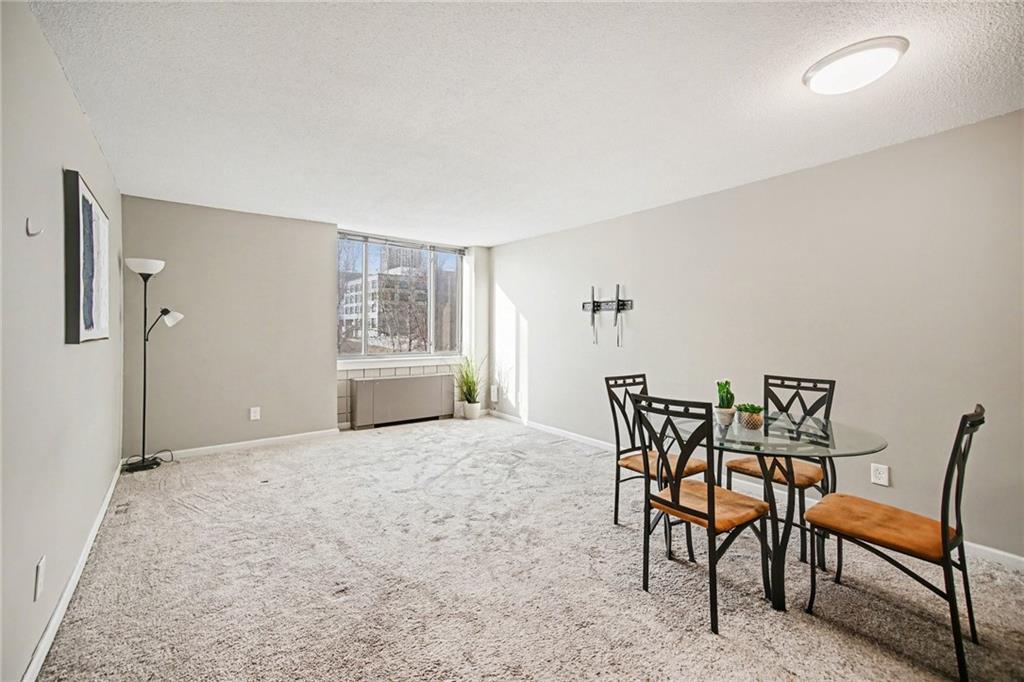 This exclusive condo at The Metropolitan is the perfect move to take advantage of all downtown KC has to offer! Walk into southern views of downtown from the living room and bedroom. Included is one uncovered parking space. Upgraded granite countertops and appliances, all staying with the unit, including a gas range. Easy to organize and store items between four closets - large walk-in near the entry, two closets located in the bathroom including a linen closet, and a standard closet inside the bedroom. In-unit laundry is an option with addition of stackable washer and ventless dryer. Top-tier building perks and amenities: amazing panoramic city views from the indoor, rooftop pool & lounge, gym/fitness center, sauna, business center, laundry facility, and outdoor courtyard with grill. Heating/cooling, water, trash, building insurance, management, concierge, and amenities ALL included in the affordable HOA dues. City living has never been better with KC's best entertainment and dining right at your fingertips with this prize location!