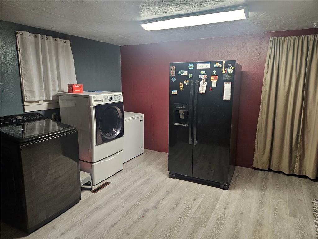 Very nice 1 1/2 story home with 3 bedrooms and 2 full bathrooms in Sharon Springs KS. Two of the bedrooms are upstairs and a master with full bath downstairs. Functional galley kitchen with a living room/dining room/ laundry room open concept area. There is a fully fenced backyard and a detached garage on a nice size corner lot.