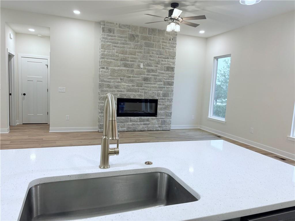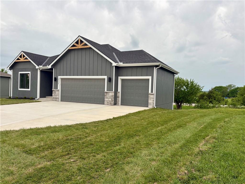 Beautiful new construction home located in the desirable Rockwood Estates is completed ! Conveniently situated just around the corner from the Paola Country Club, this thoughtfully designed home offers 4 bedrooms and 3 full bathrooms, with a spacious master suite located on the main floor. The open-concept layout seamlessly connects the kitchen and family room, creating the perfect space for entertaining and everyday living. The kitchen will feature granite countertops, and the bathrooms will showcase tiled finishes for a stylish, high-quality feel. The laundry room is ideally situated just off the master suite for added convenience. The finished daylight basement includes two additional bedrooms, a full bathroom, and plenty of space for guests, hobbies, or a second living area. A generous 3-car garage provides ample room for vehicles, storage, or a workshop. Enjoy modern comfort, functional design, and quality craftsmanship in this stunning new home in Rockwood Estates — a perfect place to call home!
