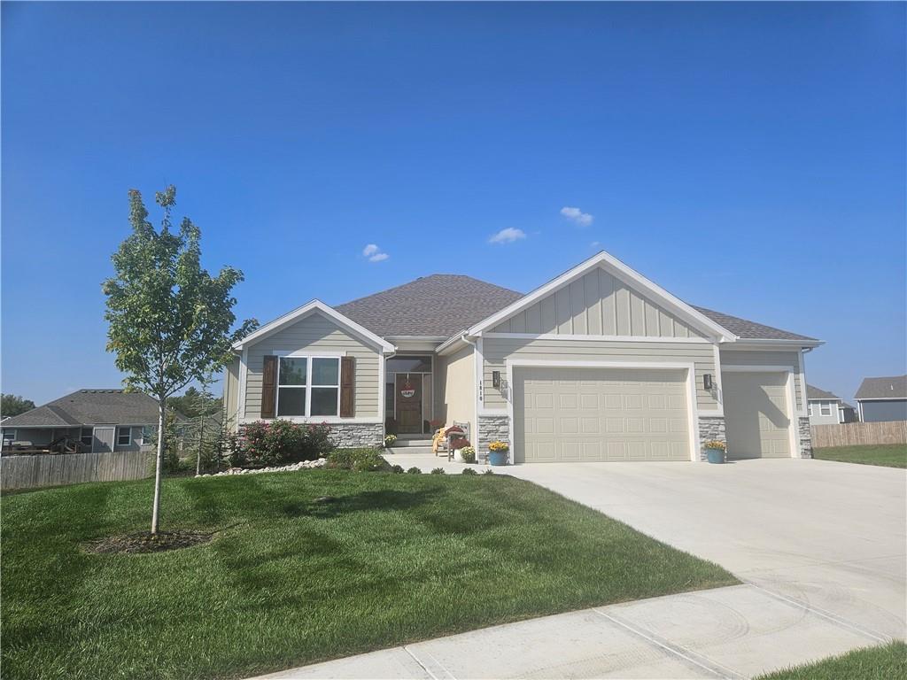 Better than new! Lovely four-bedroom reverse one and a half story by Pfannes Homes with tons of upgrades on a quiet cul-de-sac. Quartz counters, stainless steel appliances, upgraded lighting and hardware throughout, wood floors on main level. Large rec room area on the daylight lower level +2 bedrooms and a third-full bathroom and loads of storage space! Award-winning Basehor-Linwood school district! *big ticket items that stay with the home, refrigerator, washer & dryer and full house water softener and purifying system*