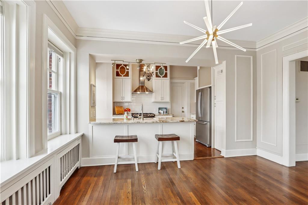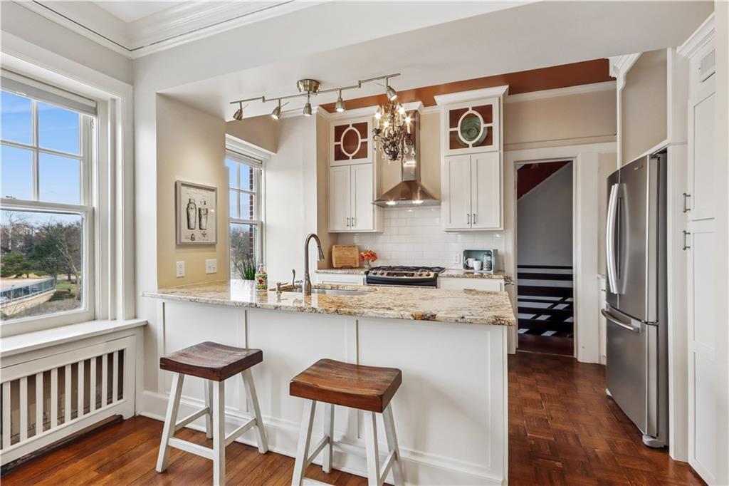 Fall in love with this beautifully updated 2-bedroom, 1-bath corner unit in the iconic Sophian Plaza. Flooded with natural light, this unit features rich hardwood floors, crown molding, and oversized windows with views in multiple directions. The updated kitchen is both stylish and functional, offering granite countertops, stainless appliances, a gas range, pantry, and spice cabinetry. Kitchen layout is open to the main living space, making it ideal for hosting or simply enjoying everyday life. The spacious primary bedroom offers generous closet space, and thoughtful touches like in-unit laundry and custom window treatments for convenience. Sophian residents enjoy a newly upgraded patio, private storage, secure exterior parking, and dues that include gas and water. Set in one of Kansas City’s most architecturally celebrated buildings, this location places you moments from the Country Club Plaza, Nelson-Atkins Museum of Art, parks, shopping, dining, and entertainment. If owning a piece of iconic architecture is on your bingo card for 2026, this one is worth it!