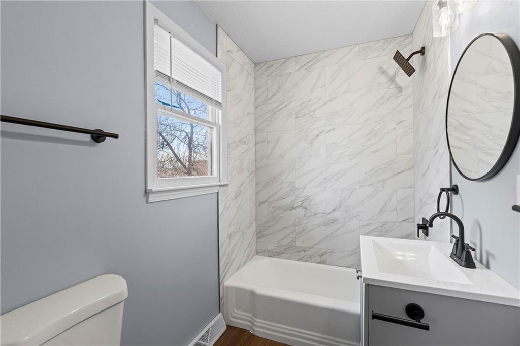 BEAUTIFULLY UPDATED RAISED RANCH! Fresh paint inside and out. Refinished wood floors in most of the home. Spacious and inviting living room. Light and bright kitchen features new crisp white cabinets, granite countertops, subway tile backsplash and stainless steel appliances! Adjacent dining area for convenience. Three bedrooms and two full updated baths! Unfinished basement for all your storage needs and garage! Nothing left to do but MOVE RIGHT IN! Quick access to major highways to enjoy all the KC area has to offer! WELCOME HOME!