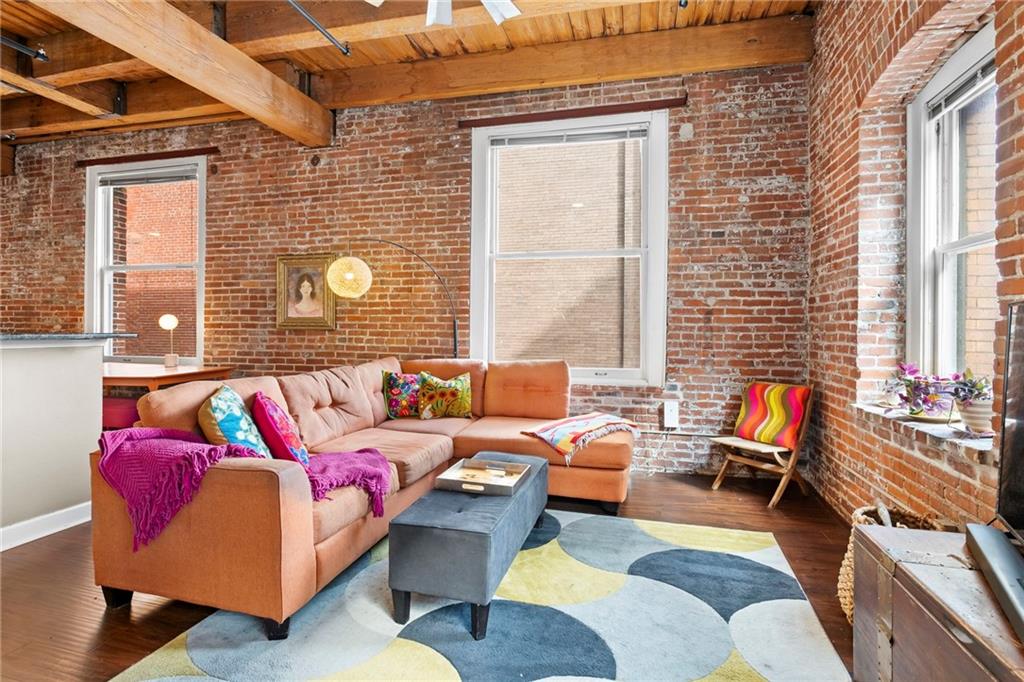 The true essence of loft living! A Garment District stunner at Soho Lofts! Industrial, Sleek and Historic Charm! Unique One Bedroom corner unit with 2 walls of original exposed brick, Soaring Wood/Cast Iron Beams and Ceilings, East and South -Wall of windows providing tons of natural light for any plan lovers out there AND CITY SKYLINE VIEWS!!! High-end LVP Wood Plank flooring, Updated light fixtures/fans, Fully updated kitchen featuring granite countertops, Custom soft-closse Cabinets & drawers, Subway Tile Backsplash, undermount lights, wonderful counter space and cabinet storage, Stainless Steel Electric Stove, Mircrowave, and full-size refrigerator! Spacious lofted 1 Bedroom w/ pocket door closet. Second Walk-in Closet with tons of hanging room and option for 3rd row! Hall Linen AND coat closet! Updated Bathroom with custom vanity, granite counter, ceramic sink, updated faucet, and tub/shower. Unlike most units in this building, ductwork throughout the whole unit for proper temperature control. Unit comes with an additional secured storage unit! Get anywhere in the city in a flash! Walk/ride to nearby restaurants, River Market, P&L, Sporting KC, and 2 blocks from the KC Streetcar! So much to enjoy in this darling hidden gem! Building amenities include Roof Top Deck, Party Room, Gym, and two Laundry facilities! One of which is conveniently located on the 4th floor! Renovated Party Room and Gym, COMING SOON! Secured parking can be leased through Denison Parking! Conveniently connected to the building! THIS COULD BE YOURS! LIGHT, BRIGHT, STELLAR LOCATION, FANTASTIC VIEWS! Loft Living is the BEST living!!! LOVE WHERE YOU LIVE! In Soho Lofts, relish history and embrace the best Lifestyle Kansas City has to offer!