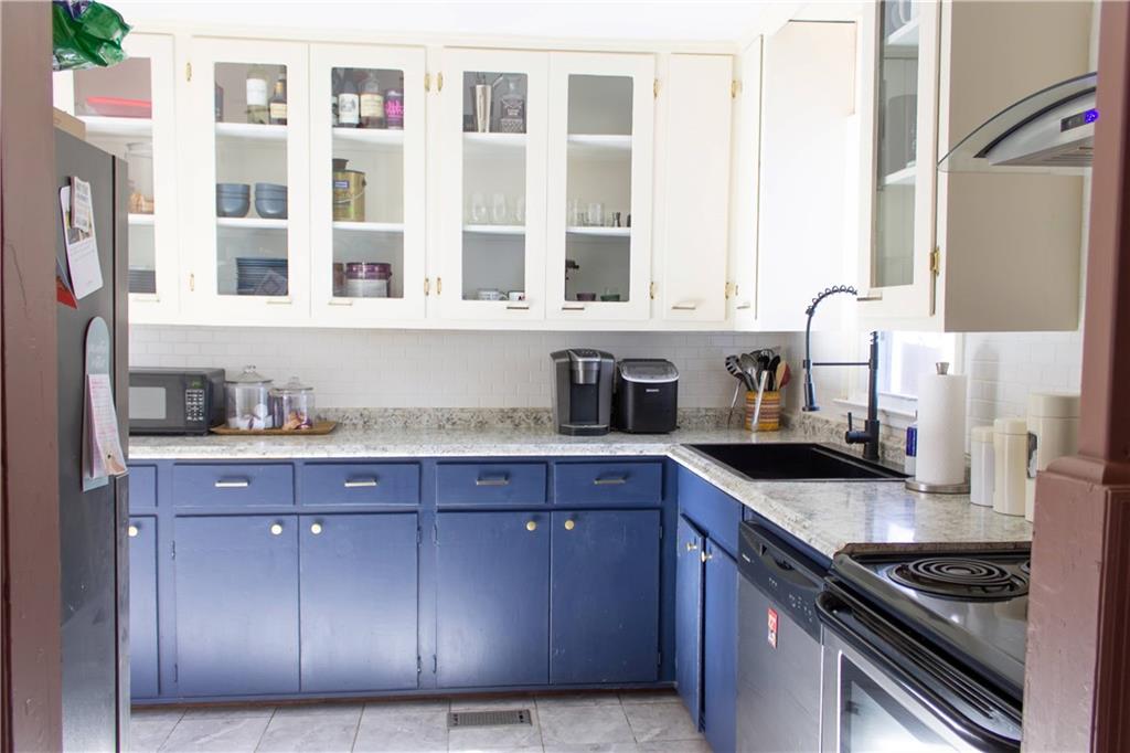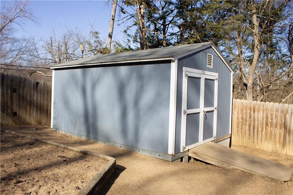 A charming Ranch/Rambler in the heart of Liberty, this home offers flexible living space and a layout for a variety of needs. The main floor features a large living area open to dining room next to airy kitchen area. The spacious primary bedroom, nearby bathroom and second bedroom are also on main floor. Upstairs you will find a third bedroom with a hall half bathroom plus a fourth room that can be utilized as an office, playroom, hobby space or additional bedroom. The lower level provides ample storage space for today's active families. Perfect for sports equipment, holiday decor or as a workshop for dad or mom! Outside the fenced back yard with a large newer storage shed offers privacy and room to create your own garden oasis! Located in a quiet, established neighborhood, this home delivers comfort, fresh interior paint in most of the rooms, beautiful wood floors, subway tile backsplash in kitchen, new concrete patio, versatility and value with room to grow.