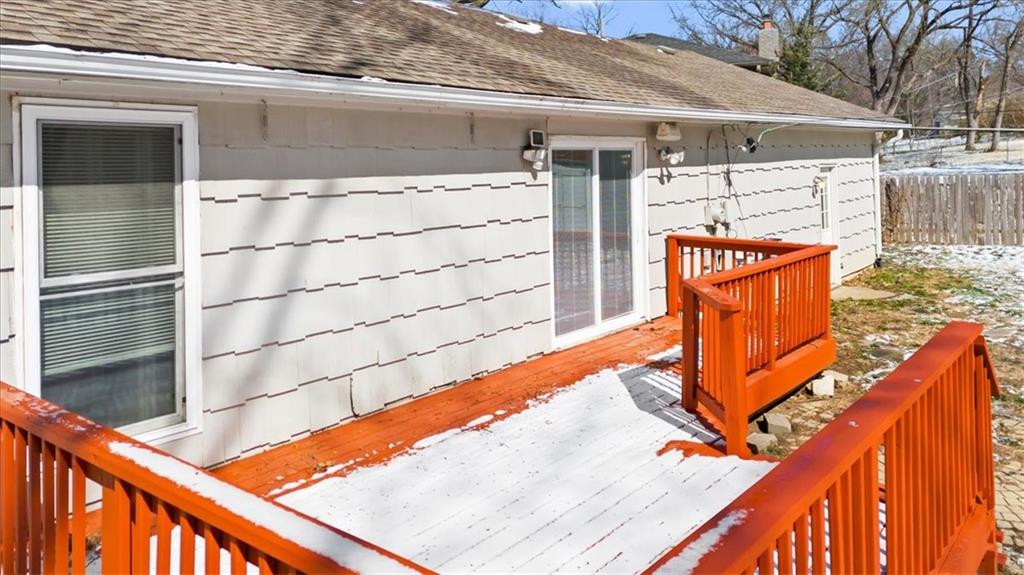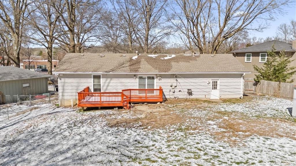 Welcome to this well-cared-for ranch featuring newer updates throughout. The main level offers an inviting open floor plan with an updated kitchen that flows easily into the living and dining areas—perfect for everyday living and entertaining. New interior paint in main area of home, refinished hardwood floors throughout main floor, and newer carpet on the stairs to the basement give the home a fresh, move-in ready feel. The main floor includes three comfortable bedrooms, one full bath, and a convenient half bath in the primary bedroom. The kitchen has granite counters and quality cabinets that is open to the living area. The large finished basement provides excellent additional living space with a media or recreation area and an additional full bath, making it ideal for movie nights, guests, or a second living area. Step outside to enjoy the huge backyard with a deck and storage shed, offering plenty of room for relaxing, entertaining, or gardening. A two-car garage adds convenience and storage. Located just minutes from shopping, dining, and major highways, this home combines space, updates, and a fantastic location.