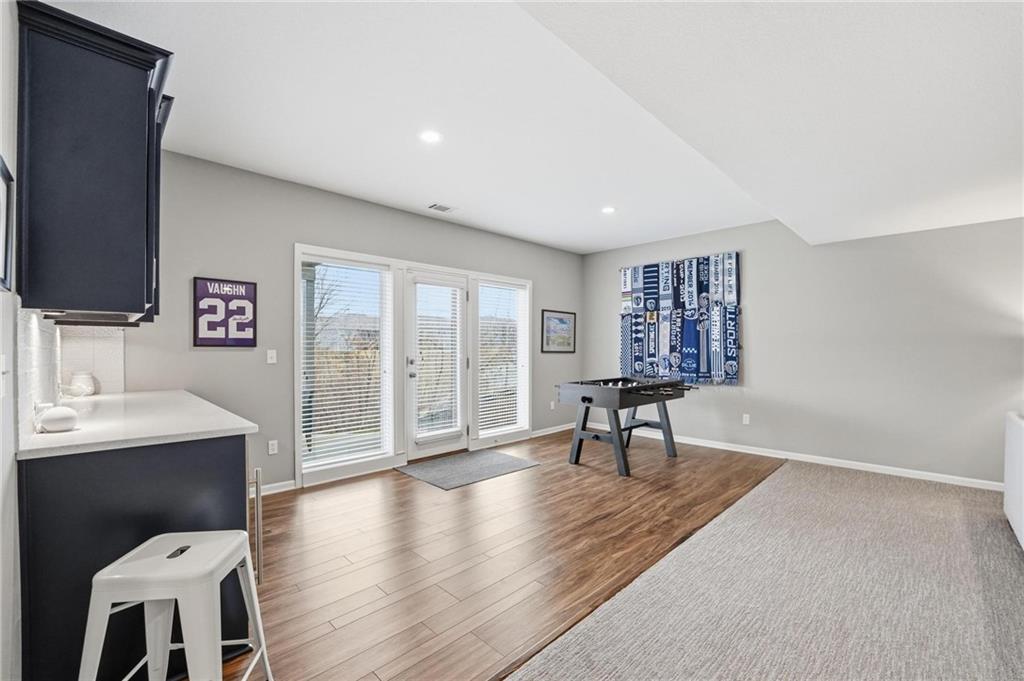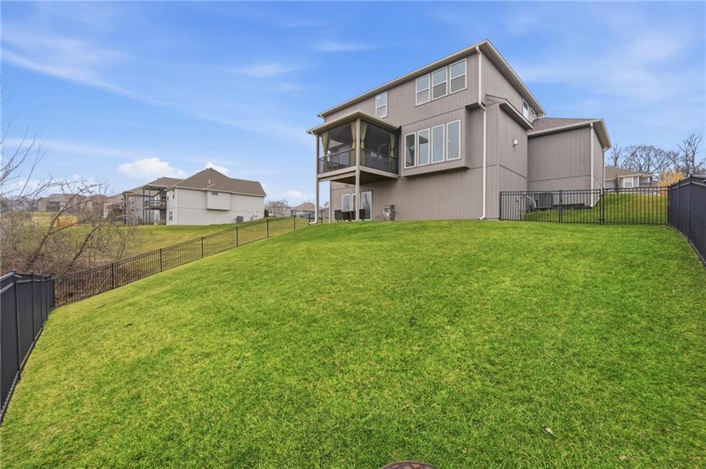 Better than new and thoughtfully designed, this beautiful 2-story home in the desirable Chapel Ridge subdivision offers space, comfort, and scenic views. From the moment you enter, you’re welcomed by a formal dining area perfect for gatherings and special occasions. Just beyond, a convenient butler’s pantry leads into the light-filled kitchen featuring quartz countertops, a large center island, pantry, and plenty of workspace. The adjoining breakfast area provides a comfortable spot for everyday dining. Step outside to enjoy the covered, screened-in Trex deck with sleek metal railings—designed for low-maintenance living—overlooking the fenced backyard and peaceful pond view. The kitchen and breakfast area open seamlessly to the inviting family room, highlighted by a stunning stone fireplace with built-in shelving and cabinetry. All four bedrooms are located on the second floor, each generously sized with ample closet space and direct access to a full bathroom. The oversized primary suite offers a relaxing retreat with double vanities, a jetted tub, dual-headed shower with bench, and a spacious walk-in closet with convenient access to the laundry room. The finished basement expands the living space with a comfortable living area, dry bar, room for game tables, a full bathroom, and a storm shelter, along with abundant storage. With beautiful finishes, functional design, and tranquil pond views, this home truly offers the best of modern living in Chapel Ridge.