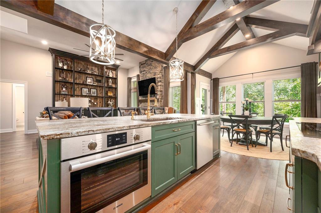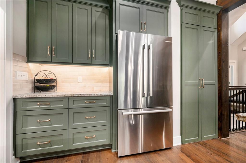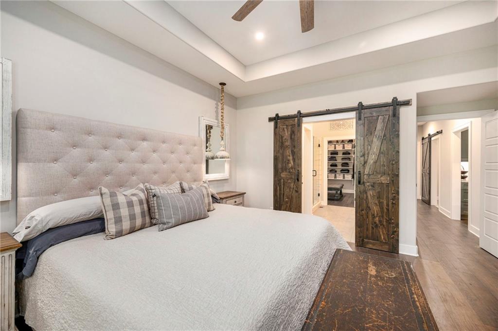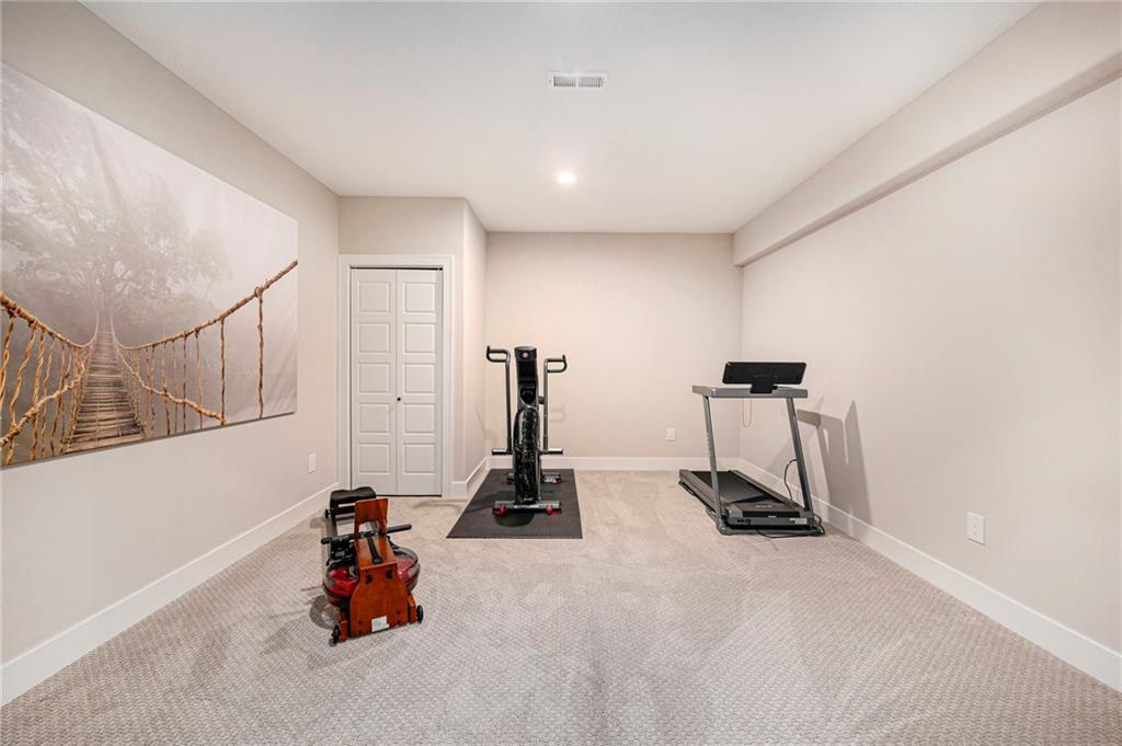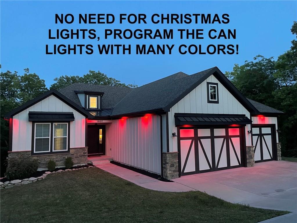 ONLY 4 YEARS NEW! TOO MANY upgrades to list, see Upgrades and Amenities Sheet and Receipts under Supplements. NO DOGS OR ANIMALS, NO SMOKING. Better than New Reverse 1.5 Story Walkout with 5 bedroom, plus a lower level office or workout room on a 1.01 acre lot. Oversized kitchen cabinets with spice drawers and various pullouts, HUGE, Tall walk-in Kitchen Pantry. Upgraded granite countertops in kitchen, 3 bedrooms on main floor and 2 Bedrooms upstairs bathrooms. Master Bedroom has vaulted ceiling and fantastic view of greenspace overlooking 1.1 acre. Master Bathroom has a large shower with 2 Rainforest Shower Heads, vanity and makeup area. 24 ft deep 3-car Garage. MULTIGENERATIONAL: Lower Level has HEATED ceramic Floors in Kitchen and Dining area! Could be an apartment with separate entry someone could live in with beverage & wine fridge that stays, dishwasher too. LL Custom Cabinets and Cabinetry. Workout room, 2 bedrooms and full hall bath with tub over whirlpool jetted tub. Upgraded stair carpet. Upgraded OUTSIDE PUCK LIGHTING that you can turn various colors. CIRCLE DRIVEWAY!! Extra Height on vaulted living room and kitchen with floor to ceiling fireplace and bookshelves/cabinets. Garage: Smart Garage Door Openers, Enlarged to 33 ft wide x 22 ft deep. 2 hard wired cameras in front. Blink Doorbell, fingerprint front door lock. Peaceful and serene, Close enough to downtown Oak Grove while being surrounded by green oasis backing to GREENSPACE. 10 min to Blue Springs…close to Lee's Summit, downtown and I-70. There is room to put an outbuilding, but it has to match the exterior of the house.