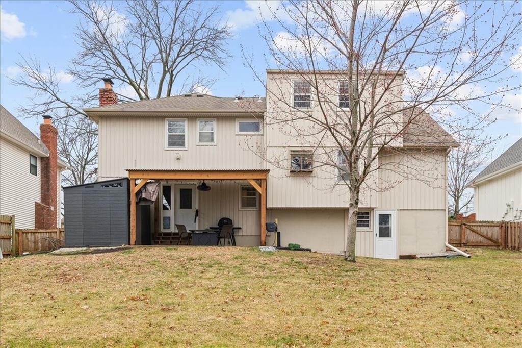 Welcome to this updated, upgraded and beautifully functional home nestled right in the highly coveted 95th & Antioch corridor of Johnson County. Enjoy being able to walk right across the street to Pawnee Elementary, or right around the corner and down the street to Strang Park, Johnson County's amazing new fenced-in children's park! There are so many reasons to love living here. Driving up, you'll be greeted by a generously sized 2 car garage, low maintenance siding and great curb appeal. Walking inside, you'll see a cozy living room with a beautiful custom accent wall, a great formal dining area and a large kitchen that offers an eat-in area that could also be utilized for more storage, etc. The primary suite offers two closets and a nice private full bathroom, the secondary rooms offer plenty of space for kiddos or guests, and the 4th room ensures plenty of space for years to come! Head downstairs to the den and find an extra half bathroom, convenient for guests, a beautiful fireplace that is ready for a gas insert to be hooked up if you prefer that, and a brand new door that walks out to the patio which boasts a brand new custom covering. As if you didn't have enough storage space, check out the brand new low maintenance shed right outside that helps to provide privacy on the back patio AND gives you a place to store extra outdoor equipment, etc. Going back inside and down to the basement, you'll realize that it doesn't feel like much of a basement, because not only is it large, clean and a fantastic place to knock out your laundry chores, it's a walkout, and could be used as a recreation room, workshop, or whatever your heart desires. Speaking of that generously sized 2 car garage, when you walk in there you'll notice new garage door opener machines and upgraded garage door brackets for smoothness, noise reduction and reliability. Appliances stay! Comes see this wonderful house and property and find out why it might just be the perfect home for you!