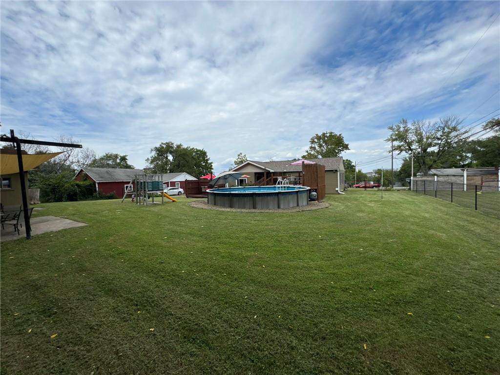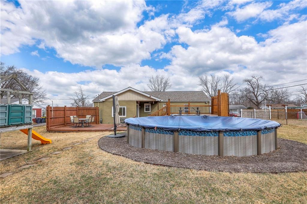 Awaiting signatures on an accepted contract.Great home tucked away on a quiet street. Backs up to greenspace of Skiles Park. Beautiful hardwood floors throughout. Three Bedrooms and 1 bath. Convenient kitchen with handy breakfast bar, pantry and dining room. All appliances stay. Spacious living room plus family room with built-ins. Laundry room provides extra storage space. Covered patio just outside backdoor. Tons of entertaining space on the backyard decks. Super above ground swimming pool with easy access from the upper deck. Warm weather fun in abundance! So well-maintained. Roof and gutters 2 years old. Easy maintenance vinyl siding. Double and triple pane replacement windows. Outside storage in the shed. Attractive black metal fencing.