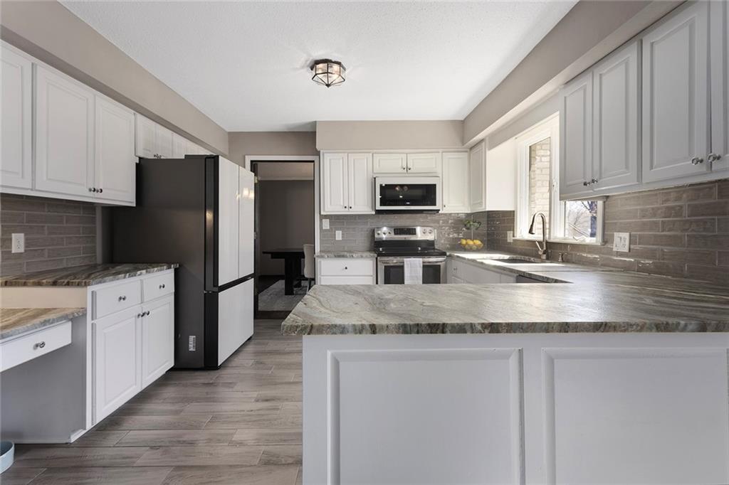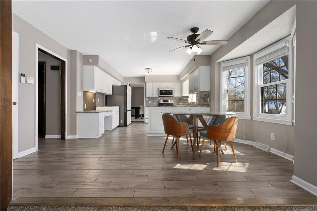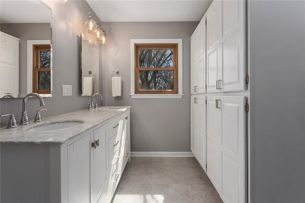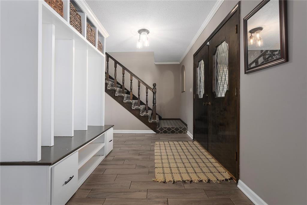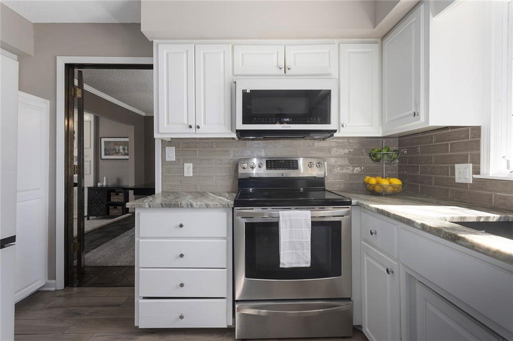 Charming Tudor with classic character and functional living spaces. Formal Living Room features a dramatic fireplace, abundant natural light, and crown molding. Spacious Formal Dining Room flows from the kitchen — ideal for entertaining. Hearth Room with brick fireplace and built-ins opens to a large deck overlooking the fully fenced yard. Luxury Primary Suite includes fireplace, double vanity, and generous storage. Finished walk-out basement offers a wet bar, fourth fireplace, and half bath. Located on a cul-de-sac in the coveted Staley/NKC School District in a market where homes in this region continue to hold value and see modest appreciation.