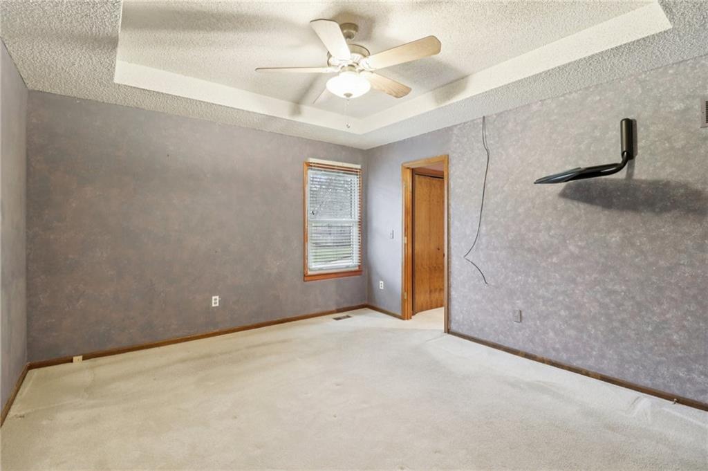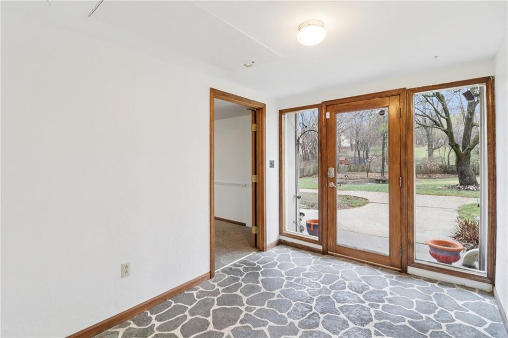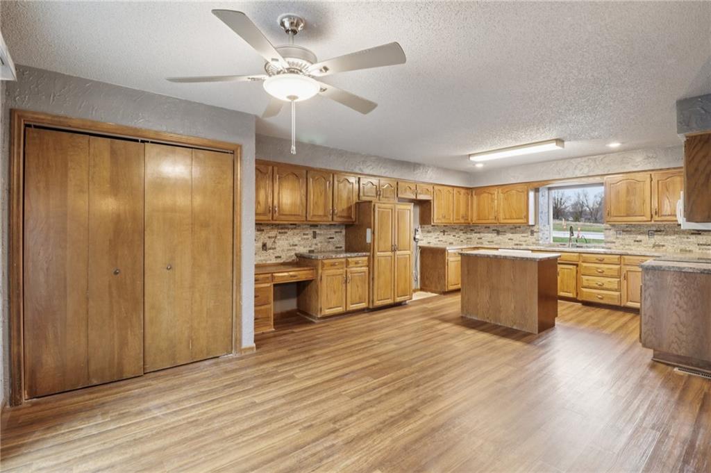 Impressive 4 bedroom raised RANCH with a walk-out finished lower level and a 3 car side entry garage. Three bedrooms and 2 bathrooms are on the main level; the 4th bedroom and full bath are downstairs. 3 car garage has side entry. The eat-in Kitchen is spacious and is adjoined by the Great Room with a large pass-through window. Perfect for entertaining. From the Kitchen you can go out onto your brand new deck. Enjoy your private 1 acre treed yard complete with a small pond, sprinkler system with a new WiFi controller, invisible dog fence and many lovely flowers and blooming trees. The home offers so much versatility. You can also go out to your front porch and enjoy the new rock landscaping and new plantings coming up everywhere. The front beds are maintenance free with a drip irrigation system to water the plants. The lower level is a great living space as well with new paint, carpet and a small kitchen. Perfect for an apartment or family member space. There is also an office room downstairs with the back door close by. Perfect for a home office or business. Approximately 2907 sq ft of living space. The home has two security systems. There are Ring security cameras on all 4 outside exits which can be activated when attached to WiFi for monitoring from anywhere. You can also activate the traditional inside alarm system for both upstairs and down. The new WiFi connected thermostat allows you to adjust the house temperature remotely. The home is in the Olathe school system and has easy highway access and convenient shops, grocery stores and restaurants nearby. Bring your decorating ideas and make this treasure your own. The subdivision boasts a 7 acre lake where your dogs can swim & you can walk around. Woodland Estates is the small subdivision with 17 home