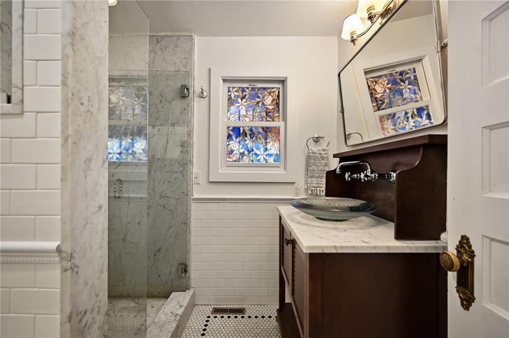 A rare opportunity in historic Hyde Park, this charming home offers 5 bedrooms and 3.5 bathrooms with timeless character and thoughtful updates throughout. Built with classic Missouri limestone shirtwaist construction, the home showcases beautifully preserved original woodwork and windows that highlight its historic craftsmanship. The main floor features two spacious living areas, including one with a cozy fireplace, along with a dining room that flows into a large kitchen complete with marble countertops and an island. A convenient main-floor primary suite with a recently renovated bathroom provides flexible living options. Upstairs, the second floor offers three generously sized bedrooms and a full bath, while the third floor boasts a massive private primary suite with a beautifully updated bathroom. Outside, enjoy the craftsman-style front porch perched high in the neighborhood—perfect for taking in stunning sunset views. A private driveway with a two-car garage adds rare convenience for the area. Ideally located just a short walk to Martini Corner, the Streetcar line, and all the vibrant amenities of Midtown living.
