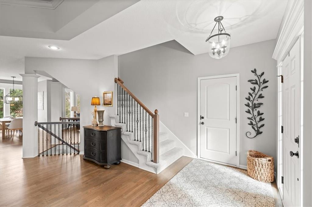 Welcome to this beautifully updated two-story home in the highly sought-after Forest View neighborhood, perfectly situated on a quiet cul-de-sac just steps from the neighborhood park, pool, schools and Cedar Niles Park with miles of nature trails. From the moment you walk in, you’ll appreciate the fresh updates and inviting layout designed for both everyday living and entertaining. The main level features refinished hardwood floors, a beautifully updated kitchen, and fresh interior paint within the last three years, creating a bright and modern feel throughout. The open floor plan flows effortlessly between the kitchen and living spaces, making it ideal for hosting family and friends. Upstairs, the expansive primary suite offers a true retreat, complete with a spacious sitting room and an updated primary bath. Secondary bedrooms are generously sized, and the carpet throughout was replaced within the last five years. The finished lower level provides additional living space with a large recreation room, a bar area, and a convenient half bath that could easily be converted to a full bath—perfect for entertaining, movie nights, or a game room. Additional improvements include plantation shutters, updated window treatments, a new hot water heater in 2020 and a new HVAC in 2020. Forest View subdivision features one of the area's most photographed waterfalls, a huge zero-entry pool, a water park area, sand volleyball, sport courts, playground, and several grilling and picnic areas. This home truly has it all!