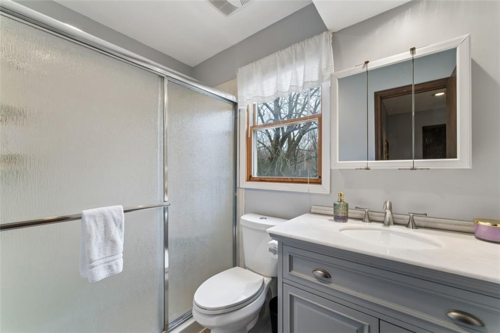 Welcome home to your new country estate! Pulling into this property, you'll hear the crunch of a freshly graveled driveway, and completely surrounded by an array of trees, giving full privacy, is a sprawling home that will await you in the quiet countryside. Inside you are greeted with an inviting entryway and sitting room with large windows facing north allowing natural light in this cozy room. Just a little further and you have a formal dining area with stylish fixtures and vibrant, stylish wall paper. The formal living room has vaulted ceilings, plenty of room for entertaining, and large, painted bookshelves on either side of a wood-burning fireplace. The room to not miss is the fully renovated kitchen, with custom cabinets, quartz counters, accents, hand-picked tile and all new appliances--you will just be excited to cook dinner every night! Towards the back, behind the kitchen is your mud area, garage with a Tesla EV charger, laundry room, and half bath for guests. The main level features 3 bedrooms and 2 bathrooms, including the primary suite, and upstairs are the remaining 2 bedrooms and a full bathroom. The basement will be a fabulous place to make your own. Almost 1,000 sq ft of finished space offers a ton of possibility for another living, office space, card table, pool table, you name it! The HUGE bonus is that you did NOT sacrifice storage space, because there is about 900 sq ft of that on the other side of the basement! Be at ease with the well-maintained mechanicals, including a new septic system as of 2021 and newer propane lines from the tank to the house. Out back you have a lovely patio space that faces into the woods. Nearby, a 30x40 outbuilding perfect for storage and workshop space. The immense privacy is something to dream about with this one of a kind home. Convenience, modern amenities, and country living all wrapped into one!