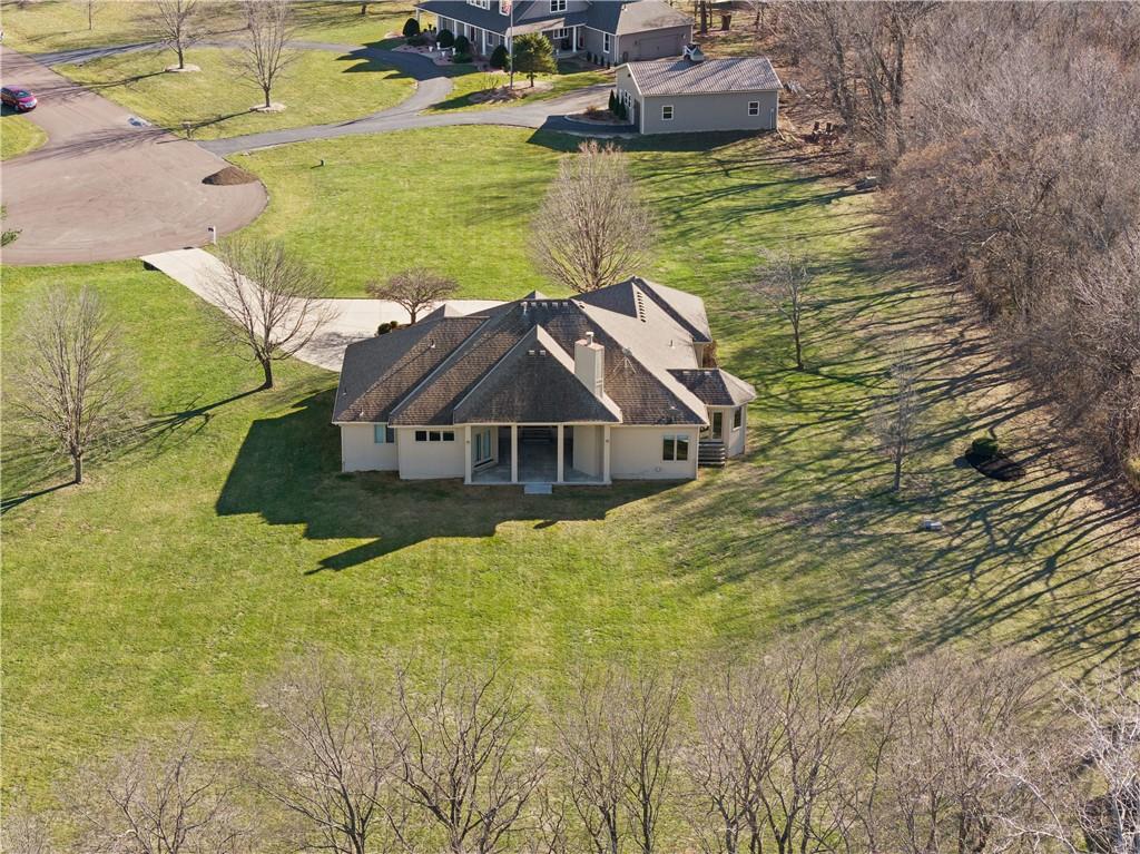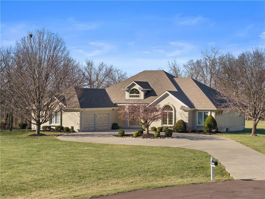 Nestled on approximately 2.2 acres in the sought after Easley Estates community of Lee’s Summit, this ranch home offers the space of country living while keeping everyday conveniences just minutes away. From the moment you arrive, the setting alone makes an impression with wide open views. Inside, the main level is thoughtfully designed for comfortable living and easy entertaining. All three bedrooms are conveniently located on the main floor. The home features an abundance of windows that bring in natural light and peaceful views of the surrounding acreage. The layout includes a dedicated home office, formal dining room, sunken living room, and an eat in kitchen featuring an abundance of cabinetry for storage and functionality. A main level laundry room adds everyday convenience. Take a moment to step outside and enjoy the lanai and the views that it offers. Wildlife, a morning coffee or an afternoon spent enjoying a new book, this will quickly become one of your favorite parts of the home. The lower level offers excellent flexibility. A fully finished room with a closet provides the perfect option for a fourth non conforming bedroom, workout room, playroom, or private guest space. The remainder of the basement has been lightly finished and is ready for the next owner to add their personal finishing touches and expand the living space even further. Step outside and enjoy the wide open backyard, complete with a storage shed for tools and equipment. The garage has been upgraded with durable epoxy flooring, adding both function and polish. Easley Estates is loved for its peaceful, acreage style living while still being incredibly convenient. Easy highway access makes commuting simple, and everyday essentials like grocery stores, restaurants, the library, and the hospital are all just minutes away. A rare opportunity to enjoy space, comfort, and location all in one property.