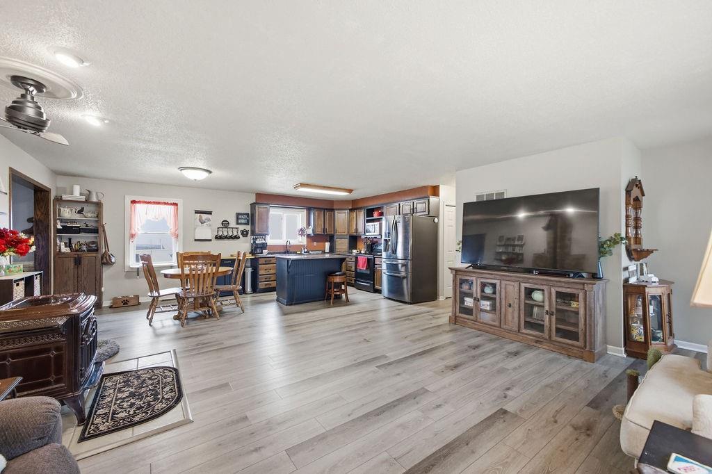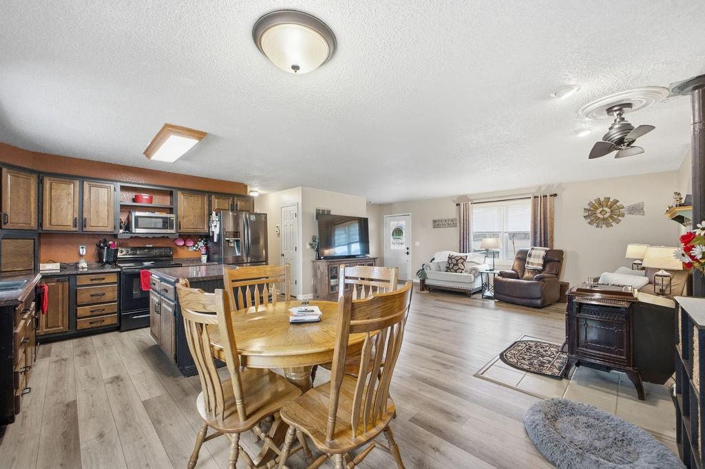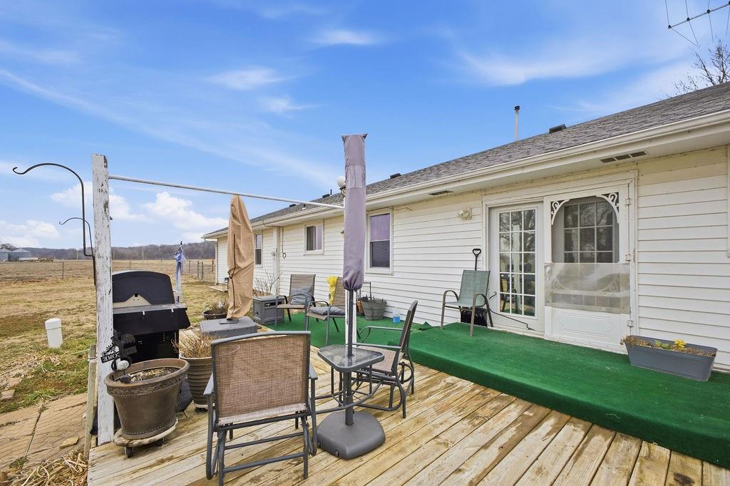 Hard to find! Enjoy 1.5 acres with easy one-level living in this 3-bedroom, 1-bath home in Amazonia. The home features an open living and kitchen layout, creating a comfortable and functional space for everyday living. A pellet stove adds warmth and character to the main living area, making it a cozy place to gather. The bonus room offers flexible space for a home office, hobby room, or additional living area. Step outside to a fenced yard with plenty of room for pets, gardening, or outdoor entertaining, all surrounded by the space and privacy that come with small acreage. A great opportunity to enjoy peaceful country-style living while still being a short drive to town.