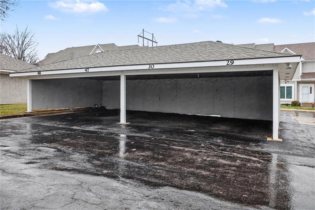 Easily accessible, end-unit condo in the desirable Lakeview community of Shawnee. All on one level, the floorplan is perfectly proportioned and functional with a living room fireplace and beam ceiling accents, dining room, breakfast bar, laundry closet and a covered deck for outdoor space. Ample storage with two entryway closets, an oversized walk-in bedroom closet plus a dedicated basement storage unit in the building. Rain or shine, your vehicle is protected with a reserved carport parking space. With this low-maintenance lifestyle, there will be more of your time to enjoy amenities such as the pool, tennis courts or one of many social events hosted throughout the year. Minutes to groceries, shopping, and dining along Shawnee Mission Parkway and Hwy 435 access!