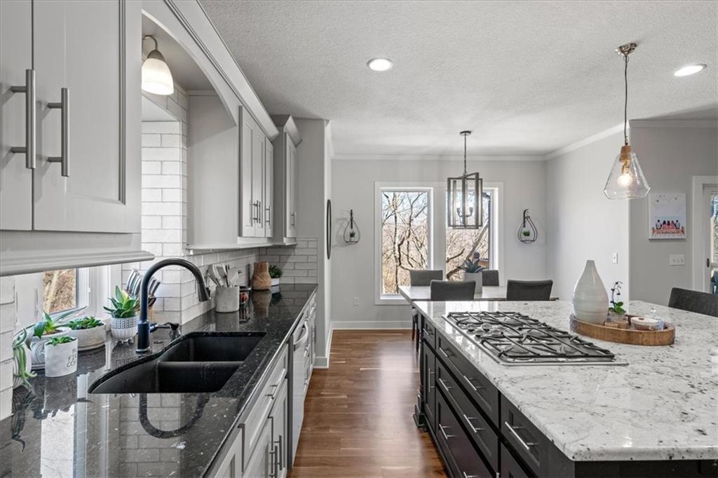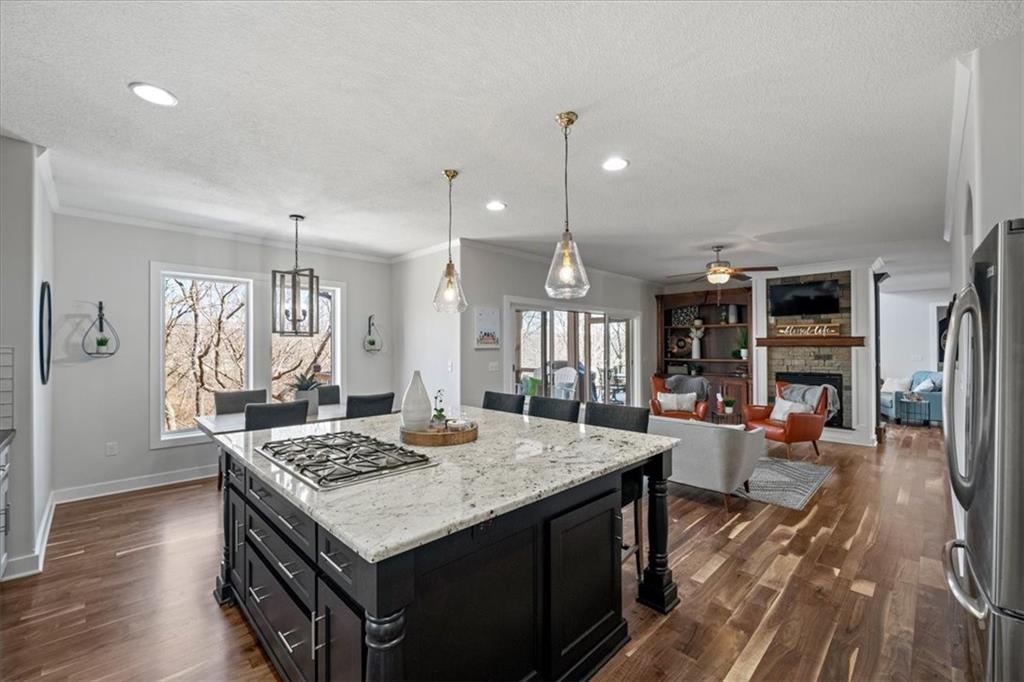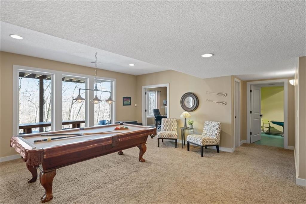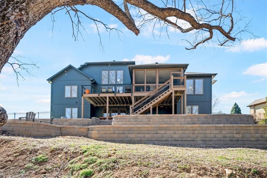 Move-in ready with a new Class-4 impact-resistant roof, finished walkout basement, and a rare fenced estate-sized lot backing to private green space—this stunning 1.5-story custom home is the total package. Step outside to pro-level landscaping: a glowing fire-pit patio, massive stamped-concrete entertaining zone, covered screened porch and new composite decking with sleek hand-built wire railing on the sun deck—providing unobstructed light and breathtaking tree views. Massive windows across the back bring the outdoors in, creating the feel of your own private rainforest retreat. Inside, every inch shows care: 2x6 exterior walls for strength and insulation, solid core doors, Andersen windows, custom cabinetry, efficient dual-zoned HVAC, Cat-5 wired network, walnut hardwoods that gleam like new, fresh exterior paint, and the Class-4 impact-resistant roof (2023) with insurance perks. The thoughtfully designed layout blends function with style. A formal dining room sets the stage for gatherings, while the heart of the home features an oversized kitchen island, gas cooktop, walk-in pantry, and abundant prep space—perfect for entertaining or casual nights. A convenient mud room keeps life organized, and a laundry chute from upstairs adds practical luxury. The main-floor primary suite offers comfort and privacy. Upstairs you’ll find a spacious loft and three generously sized bedrooms, ideal for family, guests, or home office needs. The finished basement is built for fun and functionality—complete with a wet bar, large rec/billiard room, two additional bedrooms, and a dedicated art room kids will love. Plus, the home offers impressive storage throughout. Located in the Staley attendance area with excellent highway access, this home offers space, craftsmanship, and thoughtful details throughout. A must-see!