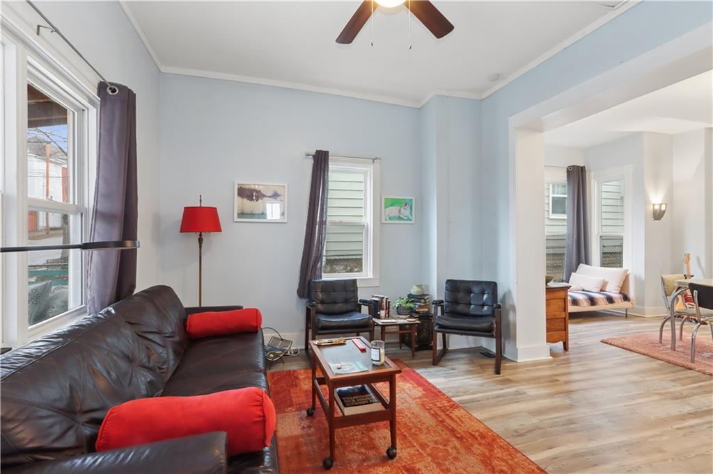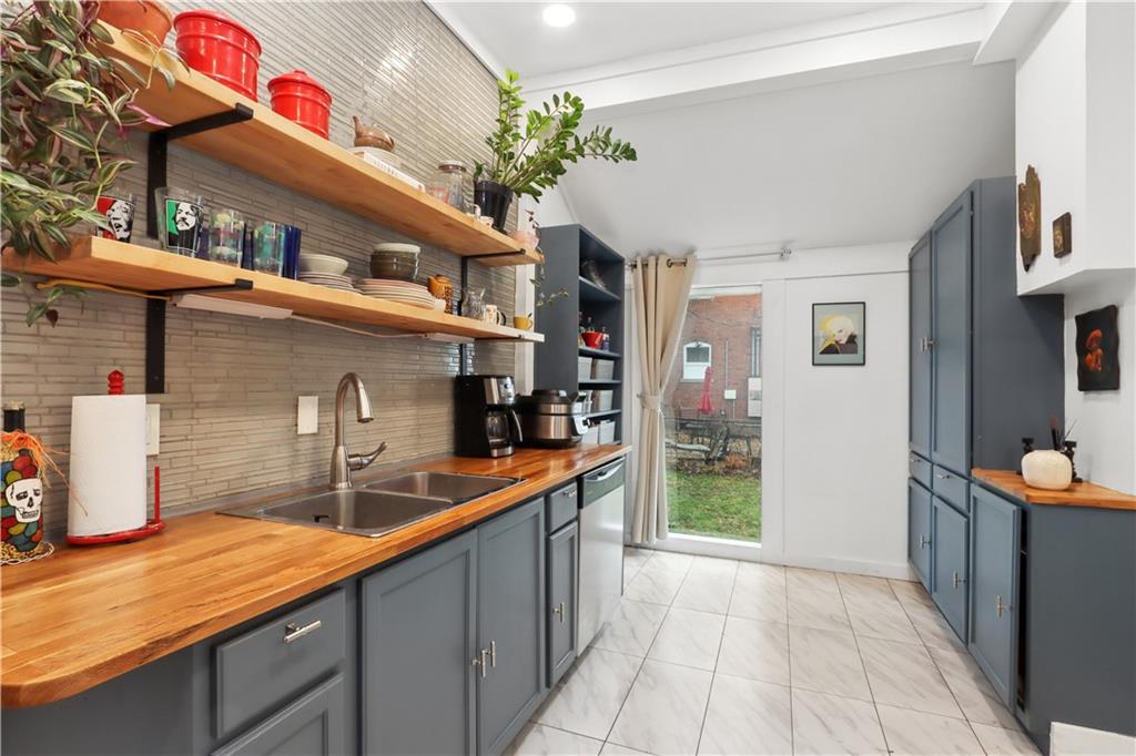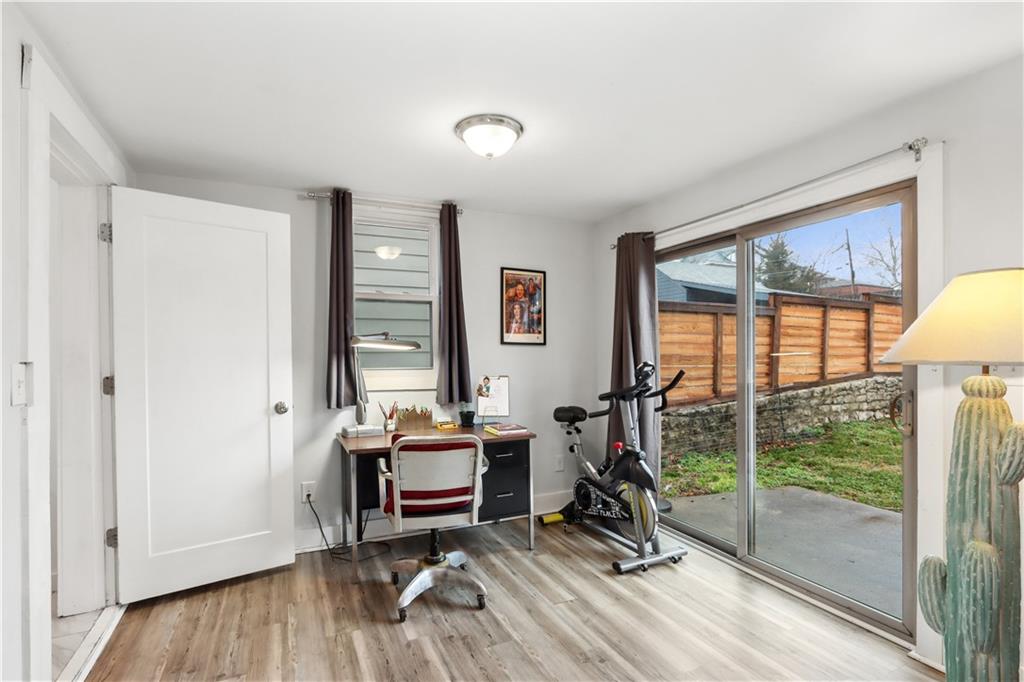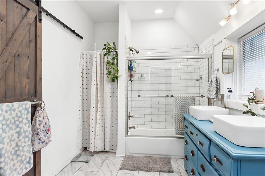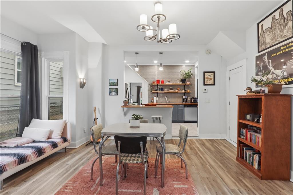 This bright, open floor plan was fully remodeled 6 years ago- roof, HVAC, water heater and sewer line 7 years old or less! On the first floor you'll find the living room, half bath, spacious dining room with an atrium reading nook, a stylish kitchen with tons of storage and open shelving, plus a hard to find main floor bedroom with full bathroom that opens to the large, partially fenced back yard! This room also makes a great family room with laundry hookups in the closet if you prefer. The 2nd floor offers 2 large bedrooms, huge walk in closet and large bathroom with more laundry hookups! Inviting front porch and back patio are great for relaxing with your favorite beverage or entertaining. Private drive big enough for 4 cars!