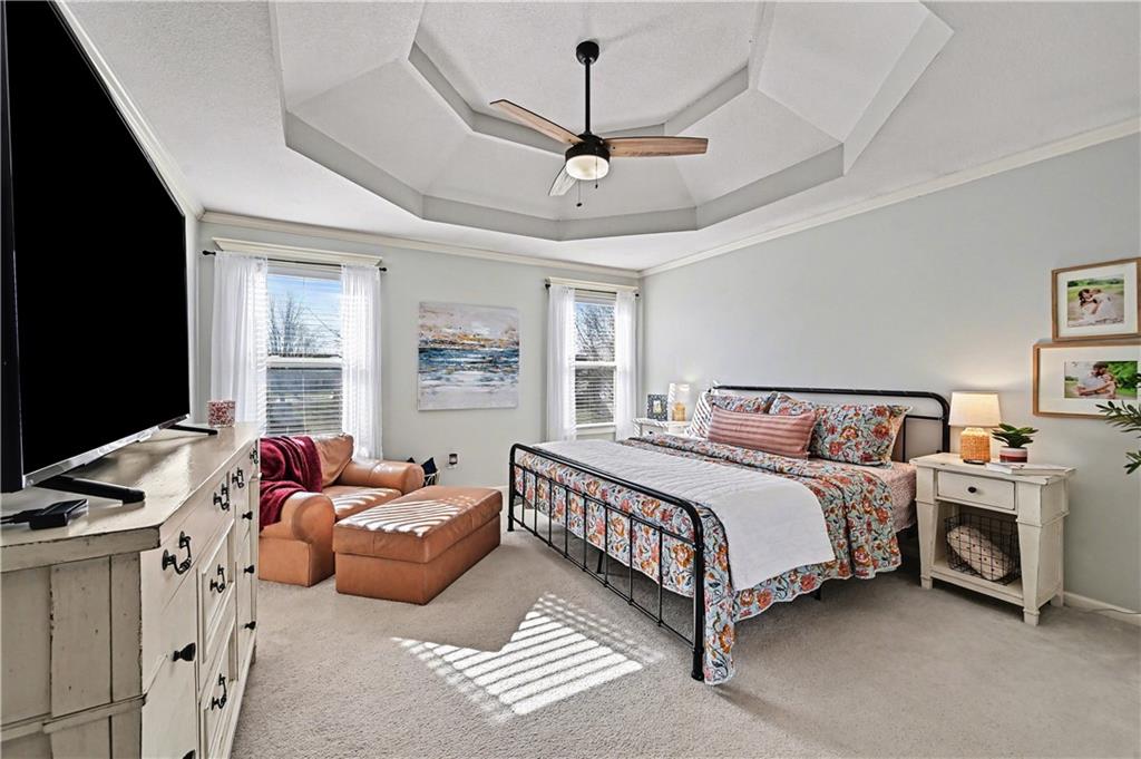 Meticulously maintained 4-bedroom, 3 bath home with a fantastic open floor plan in the highly desirable Benson Place community. Enjoy an unbeatable location just minutes from the neighborhood pool, scenic walking trails, and park in this warm, welcoming, and family-friendly neighborhood. The open eat-in kitchen is filled with natural light and features a center island and updated appliances perfect for morning coffee, weeknight dinners, and gathering with friends and family. The living area boasts vaulted ceilings, large windows, updated fixtures, and a cozy fireplace, creating a bright and inviting space with a great flow for easy entertaining. Two guest bedrooms share a hall bath with a shower-tub combo, while the generously sized primary en-suite offers a relaxing retreat with dual vanities and a separate soaker tub. Laundry is conveniently located on the bedroom level for everyday ease. The finished lower level adds even more space to enjoy with a second family room, the home’s fourth bedroom, and a full bath ideal for guests, a playroom, or movie nights. Don’t miss the hidden storage/bonus room tucked under the stairs! Step outside to a large deck overlooking the fenced backyard, perfect for relaxing evenings or weekend get-togethers. While a spacious three-car garage provides plenty of room for vehicles and storage. This home truly combines comfort, space, and an incredible community setting.