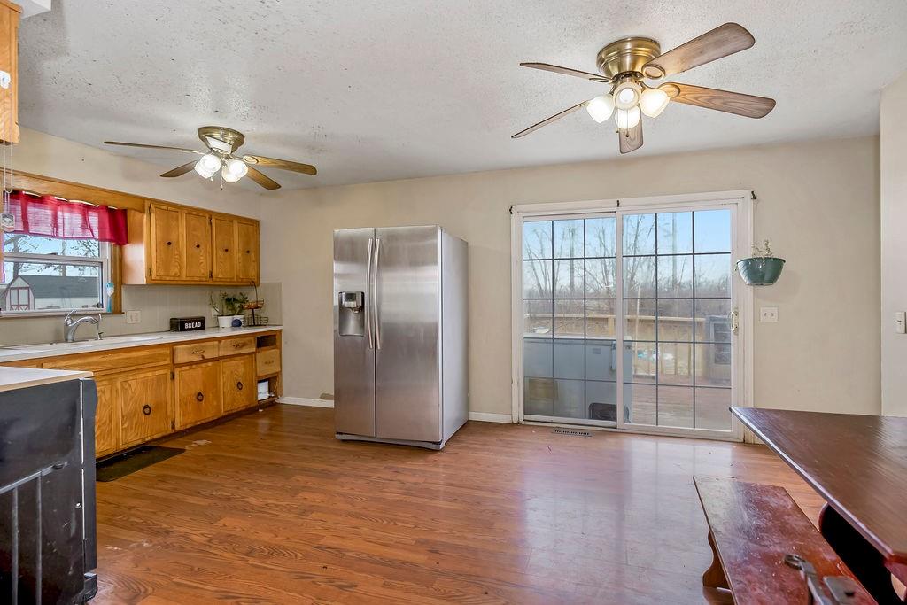 Opportunity awaits with this raised ranch set on a spacious lot backing to farmland, offering peaceful views and plenty of room to enjoy the outdoors. All bedrooms and a full bathroom are conveniently located on the main level. The unfinished basement provides abundant storage and great potential for future finishing—offering an opportunity to update and build equity. Walk-out access from the garage leads to the front of the home, and a full-size shed adds additional outdoor storage. The AC unit is less than a year old. Located in Gower, MO with easy highway access—approximately 25 minutes to St. Joseph and about 30–40 minutes to Kansas City—this property offers small-town living while remaining within reach of city amenities. Schedule your showing today!