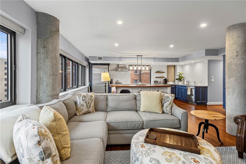 This is the one! A beautiful 7th Floor 2 Bedroom 2 BATH unit in the Winston Churchill facing Brush Creek and Sunset Hill! Unit 706. Located on the Country Club Plaza, this unit includes an assigned garage parking space. This condo was completely updated including new cabinets, baths, in-unit laundry and much more. Rare 2-bath unit. Enjoy the fitness facility, rooftop party room and deck. Walk to restaurants, shopping and Plaza events. Hurry!