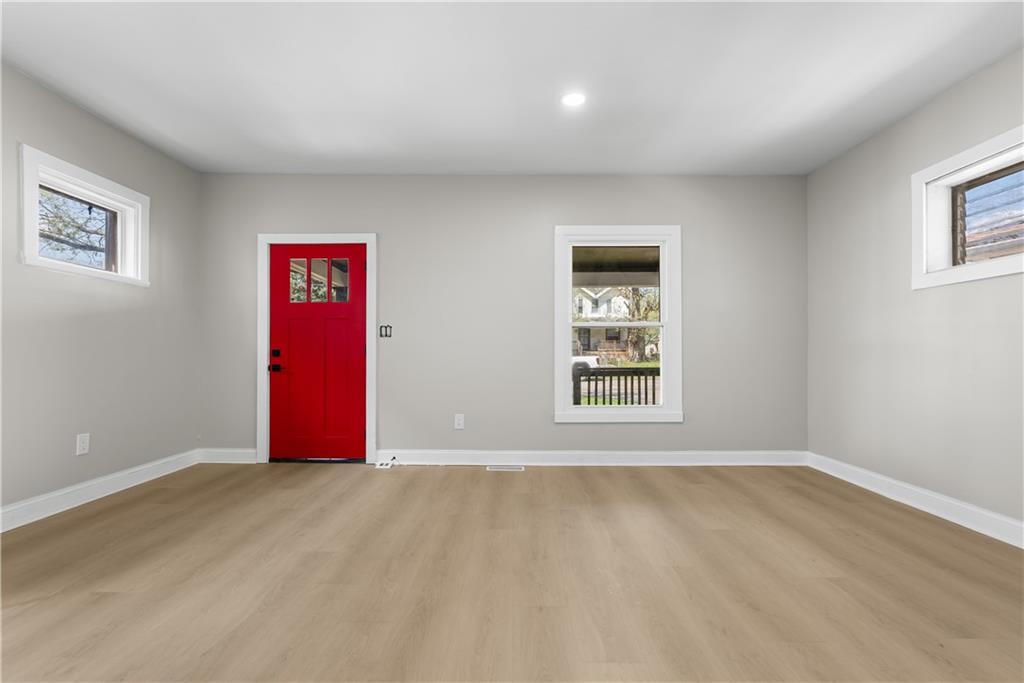This 4-bedroom, 2-bath 1.5-story home at 3403 Indiana Ave offers extensive recent updates and functional living spaces. The interior renovation includes new kitchen finishes, updated bathrooms, new flooring, fresh interior paint, and updated fixtures throughout the home. The eat-in kitchen provides dedicated dining space and convenient layout. The main level includes a bedroom and full bathroom, while additional bedrooms are located on the upper level. An unfinished basement offers storage and utility space. Built in 1905 with approximately 1,113 sq ft of living space, this home combines historic character with modern updates. Located in Kansas City with convenient access to major roadways and city amenities.