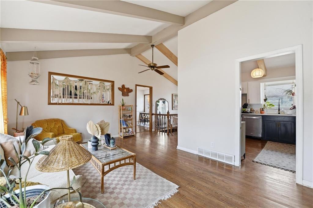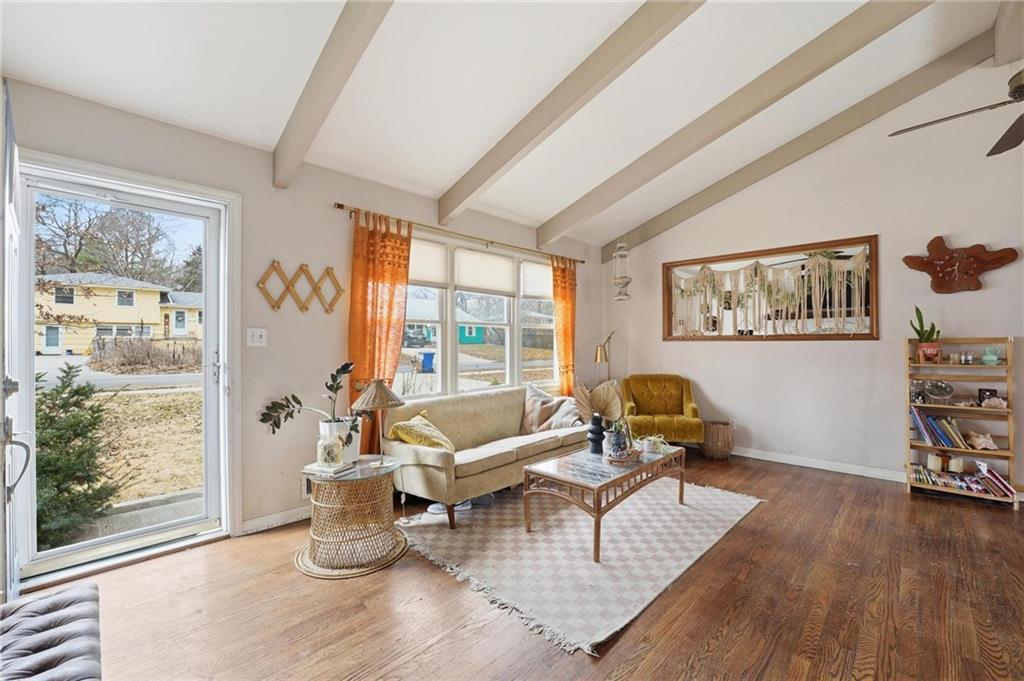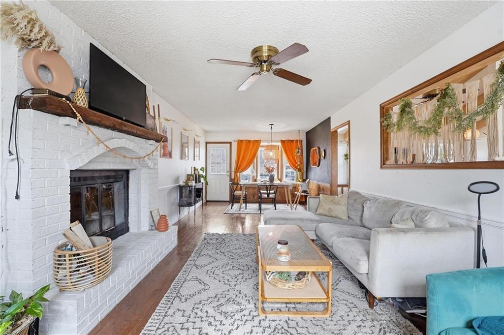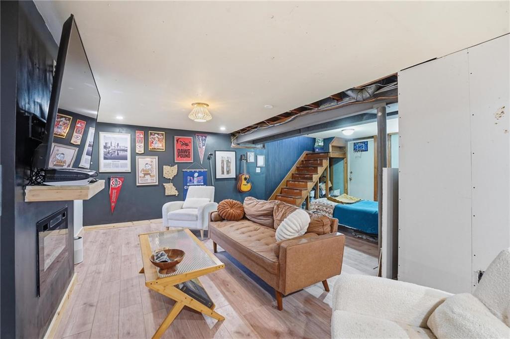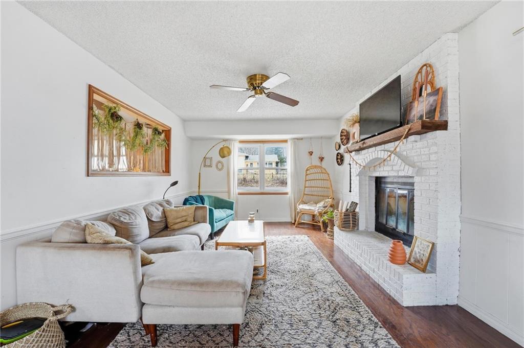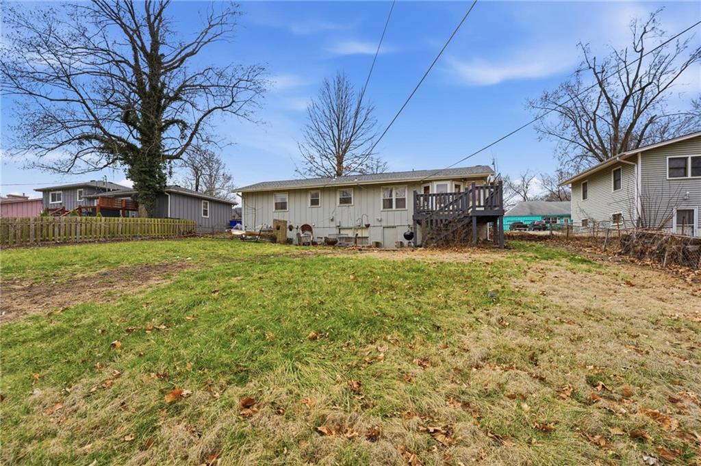 Welcome home to this charming 3-bedroom, 1-bath home that offers comfortable living and great functional space. Hardwood floors flow throughout the main level, adding warmth and character. The inviting family room features a cozy wood-burning fireplace, perfect for relaxing evenings at home. The open kitchen features stainless steel appliances and quartz countertops, creating a bright and functional space for cooking and gathering. Enjoy the flexibility of two separate living areas, providing plenty of room for entertaining, working from home, or creating a play or media space. The partially finished walkout basement offers even more usable space with a dedicated workout area and abundant storage. Step outside to the deck overlooking the fenced backyard, ideal for outdoor dining, pets, gardening, or simply enjoying the outdoors. With a practical layout and great indoor and outdoor spaces, this home is a wonderful opportunity for comfortable everyday living.