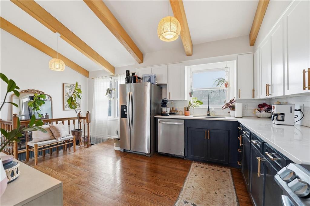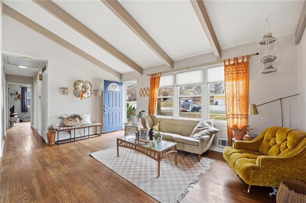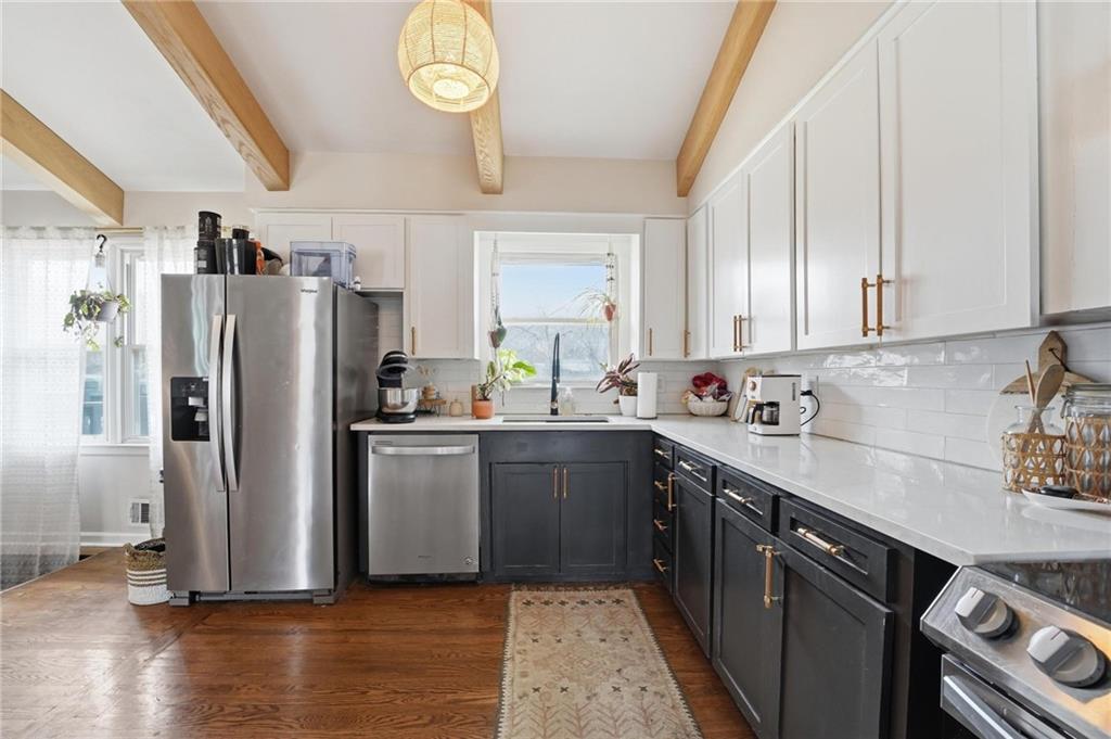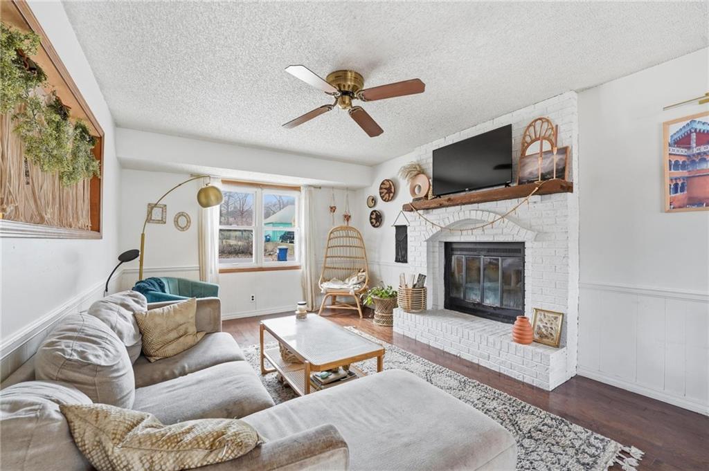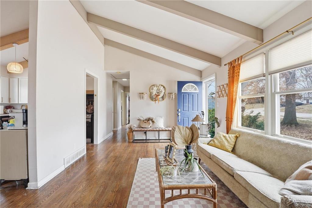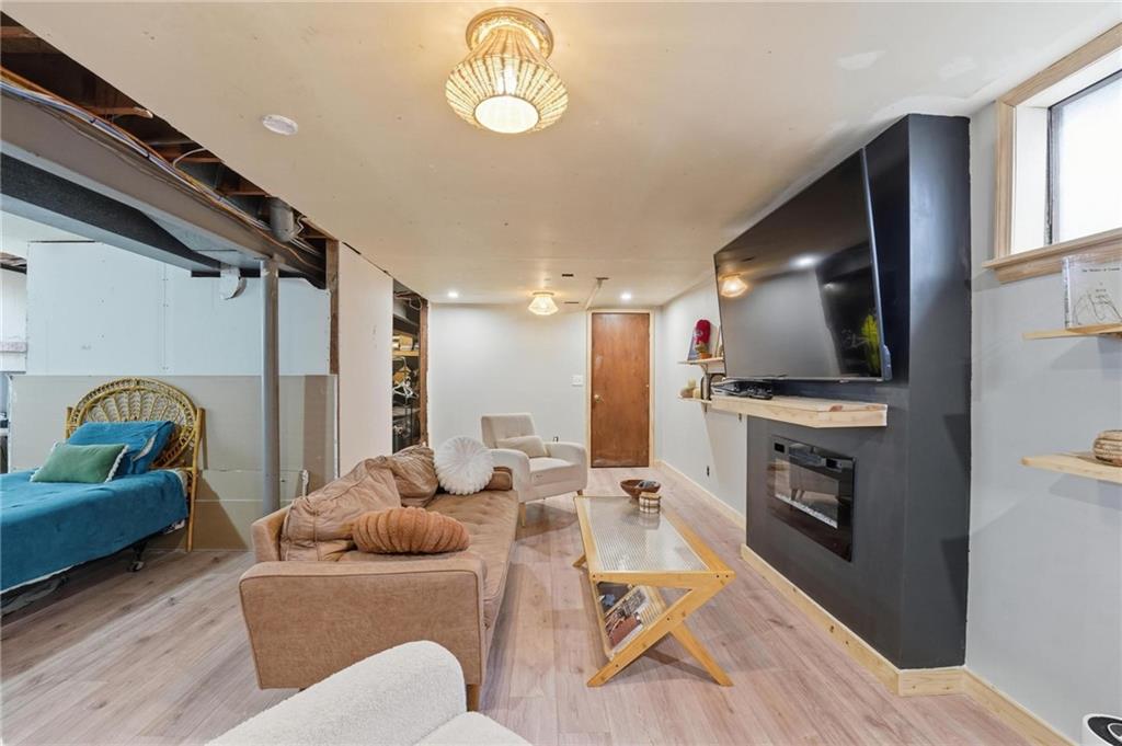 Welcome home to this charming 3-bedroom, 1-bath home that offers comfortable living and great functional space. Hardwood floors flow throughout the main level, adding warmth and character. The inviting family room features a cozy wood-burning fireplace, perfect for relaxing evenings at home. The open kitchen features stainless steel appliances and quartz countertops, creating a bright and functional space for cooking and gathering. Enjoy the flexibility of two separate living areas, providing plenty of room for entertaining, working from home, or creating a play or media space. The partially finished walkout basement offers even more usable space with a dedicated workout area and abundant storage. Step outside to the deck overlooking the fenced backyard, ideal for outdoor dining, pets, gardening, or simply enjoying the outdoors. With a practical layout and great indoor and outdoor spaces, this home is a wonderful opportunity for comfortable everyday living.