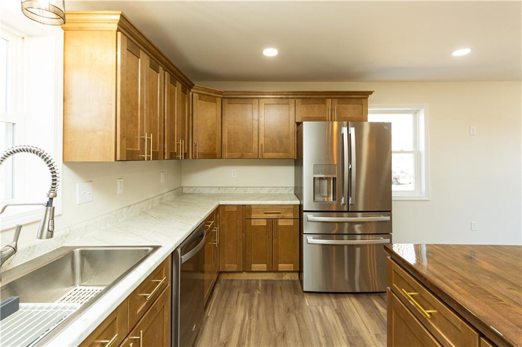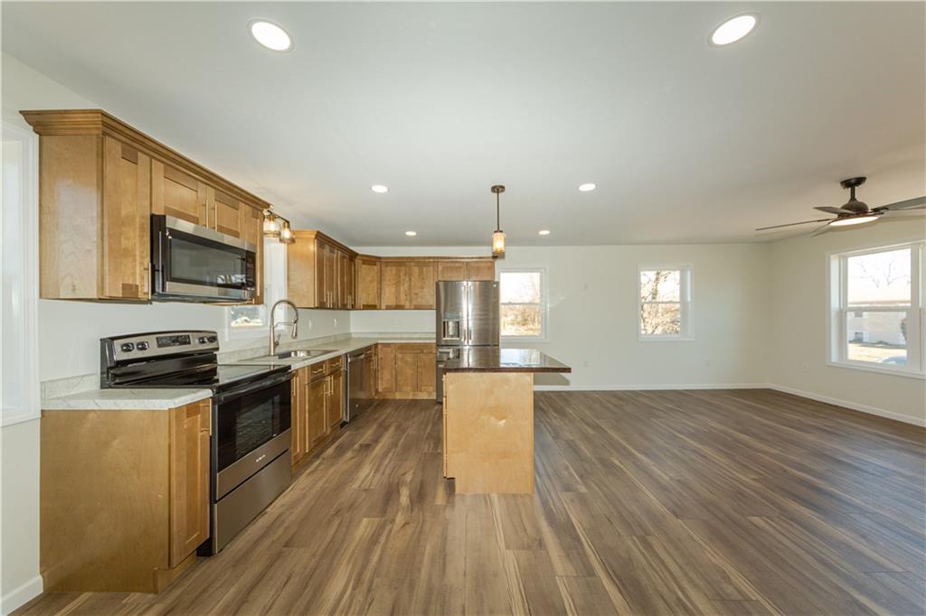 If you've been waiting for a home where EVERYTHING is new... this is it! This fully remodeled home has been updated from top to bottom and is completely move-in ready. Inside you’ll love the open kitchen, living, and dining layout, featuring an island with seating and all appliances included. The main level offers 2 bedrooms and a full bathroom, while the finished basement adds 2 non-conforming bedrooms, a 2nd bathroom, and a spacious family room—plus extra room for an office, play area, or hobbies. The basement also includes painted concrete floors for a modern, durable finish and a handy storage area. Step outside and enjoy the front porch, spacious back deck, and good-sized yard, all tucked away on a quiet dead-end street. Additional highlights include Smart LP siding, a new roof, new tankless water heater, new package HVAC system and a gravel driveway. Everything in this home is brand new—just move in and enjoy!