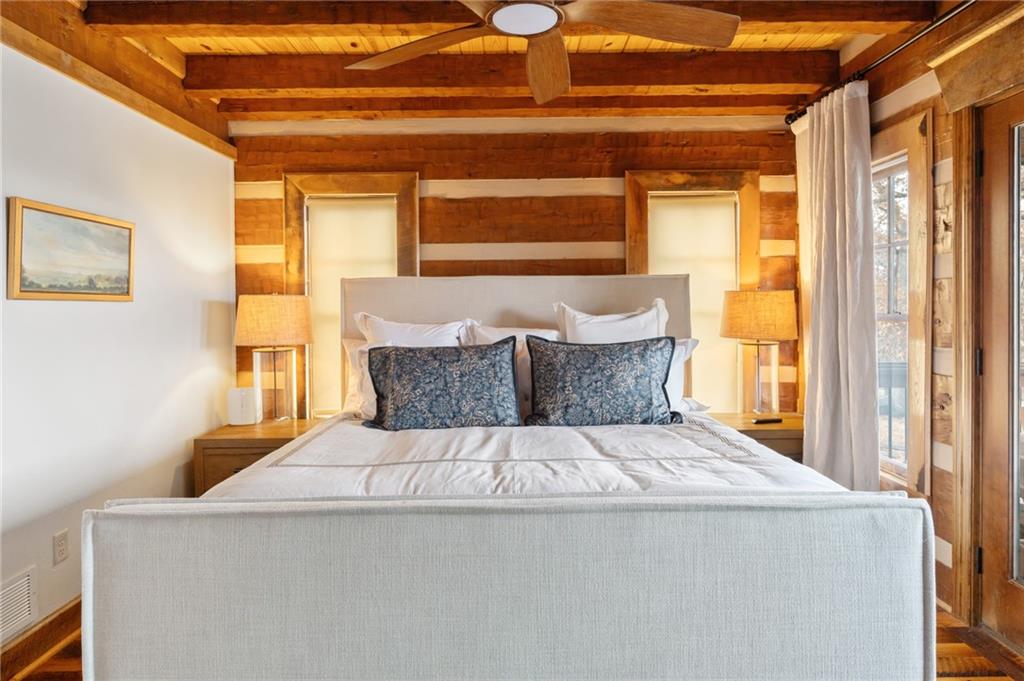 Magazine-Worthy Waterfront Living! Welcome to this stunning turn-key waterfront retreat where craftsmanship and thoughtful design shine in every detail. From the rich reclaimed oak floors to the beautifully crafted walnut cabinetry, this home blends elegance with warmth, creating a grand yet inviting atmosphere. Soft, timeless tones and numerous recent updates make this home feel both stylish and comfortable. The spacious layout offers 5 bedrooms plus 2 non-conforming rooms, providing plenty of space for family and guests. A charming bunk room adds a fun touch for gatherings, while the fully furnished movie theater room is perfect for cozy nights in. The primary suite opens directly to a peaceful screened-in porch, allowing you to wake up and step outside to the sights and sounds of the lake. Take in panoramic views of the quiet cove from the extended maintenance-free composite deck. Outdoor living continues with a cement patio, hot tub, and beautiful stone steps leading down to the dock, creating the perfect setting to enjoy both indoor and outdoor lake living. Natural rock walls enhance the landscape, while the private dock with boat lift and jet ski port are ready for your enjoyment. Located behind a buoy in a peaceful cove, this spot is ideal for fishing or simply soaking in the tranquility of lake life. You will love the abundance of fish including catfish, bass, crappie, and walleye—truly a fisherman’s paradise. Situated on the beautiful 630-acre lake at Lake Viking, residents also enjoy access to a full-service marina and an active lake community. Recent improvements include new zoned heating and cooling, new carpet, a remodeled bathroom, updated fixtures, and new lighting, adding even more value and comfort. This exceptional lake home offers the perfect blend of luxury, comfort, and natural beauty—all set within the picturesque surroundings of Lake Viking. A property like this must be experienced in person to truly appreciate.