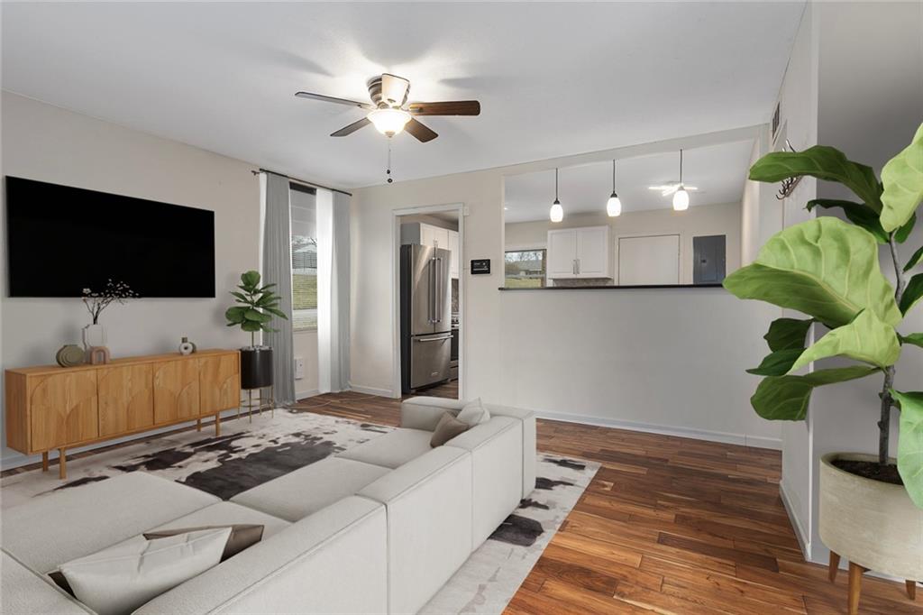 This charming 3-bedroom, 1-bathroom home is all on one level and sits on a desirable corner lot. Enjoy the convenience of easy highway access and being just moments away from an array of restaurants, shops, and more! The kitchen comes equipped with sleek stainless steel appliances, all of which are included. The roof, HVAC, and windows are all newer, ensuring peace of mind and efficiency. The home also features real stucco siding for lasting durability. Step outside to the backyard, perfect for entertaining, with a cozy fire pit and lounge chairs. The well-built shed in the backyard also stays with the property, offering extra storage space. For peace of mind, the Vivint security system is included as well! Come take a look at this affordable cutie today! *Some photos have been virtually staged*