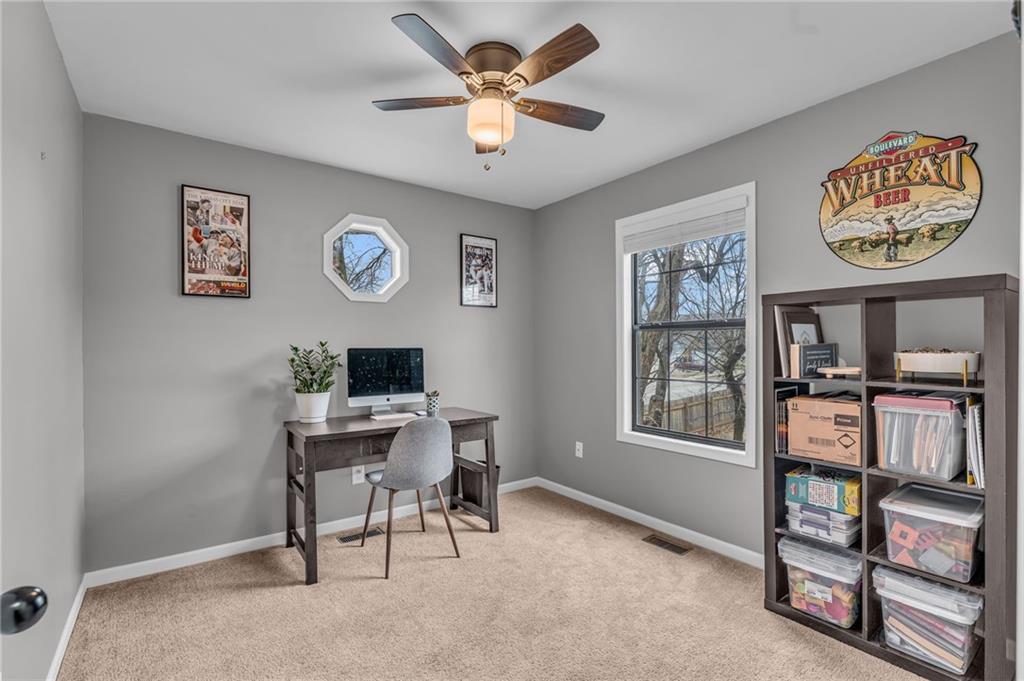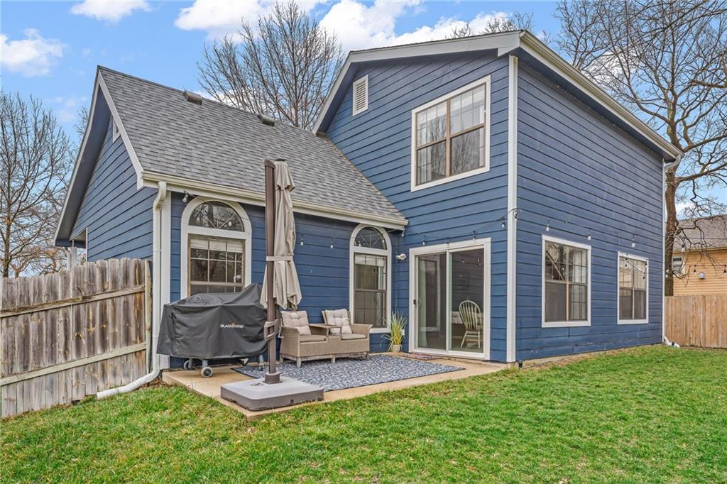 Style + function blend perfectly to create a wonderfully updated space to call home. The current homeowners have thoughtfully & diligently addressed so much here...newer HVAC, fresh interior paint, & a sharply updated kitchen highlighted by beautiful tile backsplash, granite countertops, & stainless steel appliances. BRAND NEW ROOF to give you peace of mind for years to come. A spacious main level with big windows that provide plentiful light look out over a fenced backyard with storage shed & back patio perfect for R&R. Upstairs you'll find ample-sized bedrooms highlighted by a spacious 16x12 primary bedroom with classy accent wall, en-suite bathroom, & walk-in closet. All of this just a short stroll from Prairie Park, the nature center, and elementary school. Come check out your next home!