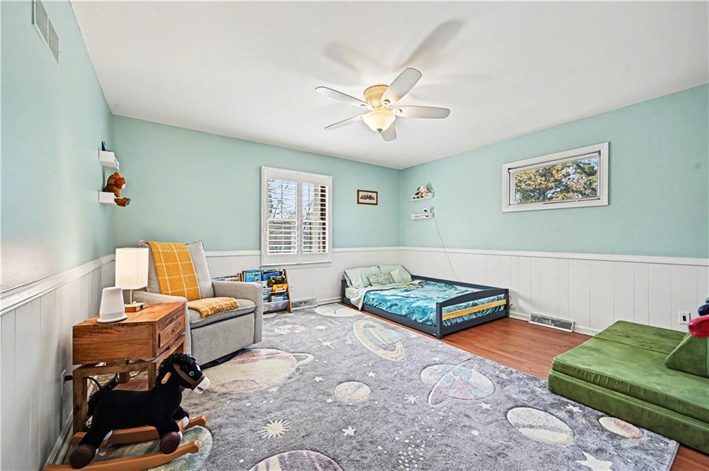 Lush Lot. Exceptionally Maintained. Welcome to this lovingly maintained home in the heart of Sylvan Grove—where vintage character and thoughtful updates come together to create a space that feels timeless. From the moment you arrive, the home’s manicured lawn, mature landscaping, and inviting curb appeal set the tone for what’s inside. Sunlight pours through the windows, highlighting a cozy interior that blends nostalgic design details with modern comfort. The main level offers a beautifully functional kitchen with stainless steel appliances, classic wood cabinetry, sleek countertops, and hardwood floors. The adjacent dining area features plantation shutters and a built-in desk nook. The living room is warm and inviting, featuring exposed wood beams, rich paneling, and a classic brick fireplace. A charming Dutch door off the living room opens to the backyard—allowing fresh air and sunshine. Decorative mirrors, vintage cabinetry details, and distinctive hardware throughout the home add layers of personality and history. One of the home’s most delightful surprises is the preserved vintage character found in the bathrooms, including original tilework with a beautiful fleur-de-lis motif. Upstairs, the spacious primary suite offers a remodeled private bath featuring a marble-inspired shower and updated vanity. Two additional bedrooms share hall bath.The finished lower level adds valuable flexibility with a generous rec room that can easily serve as a home office, media space, or potential fourth bedroom. A third full bath along with laundry and storage space makes this level ideal for guests, hobbies, or working from home. Step outside to an expansive deck overlooking the fully fenced backyard. With its preserved vintage details, tasteful updates, walkable location, and warm, light-filled interiors, this gem offers the best of both worlds—character you can’t replicate and the functionality today’s buyers are looking for.