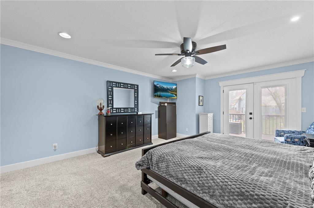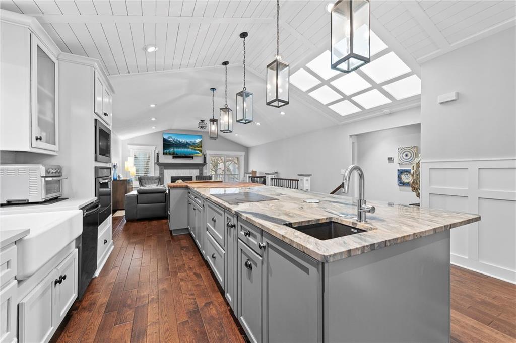 Welcome to 318 Lakeside Drive nestled just off the Liberty Triangle, this delightful neighborhood boasts lush trees, serene ponds, and a park like setting. Very convenient for shopping, dining out and all your daily needs. This exceptional property is ready for new owners and features convenient main level living with an open floorpan, fully remodeled and professionally designed with designer touches everywhere! Modernized kitchen with the quartzite island and walnut table top with seating for eight perfect for entertaining all your guests. Upgraded newer kitchen appliances, farm sink, Blanco prep sink, custom cabinets with storage galore, soft close drawers and doors, and a floor to ceiling pantry. The kitchen opens up to the living room with a delightful gas fireplace. The owners suite is large and inviting and features updated bath with tiled walk in shower, double vanity and a walk in closet. This also opens to the outside deck. Perfect for those morning cups of coffee! There is also another bedroom off the front of the home with a large closet that could also double as an office/formal dining room as well. The second bath also features a nice skylight and an elegant tiled walk in shower. Main floor laundry and also a second deck off the kitchen perfect for the grill! The lower level features a second gas fireplace, large family room, and a third bedroom and ensuite bath perfect for guests. There is also an ample storage room with epoxy floor and more storage under the stairwell. The garage also has and epoxy floor and the decks are made of composite material. Newer high efficiency HVAC system installed. This is a must see! Call to schedule a tour today!