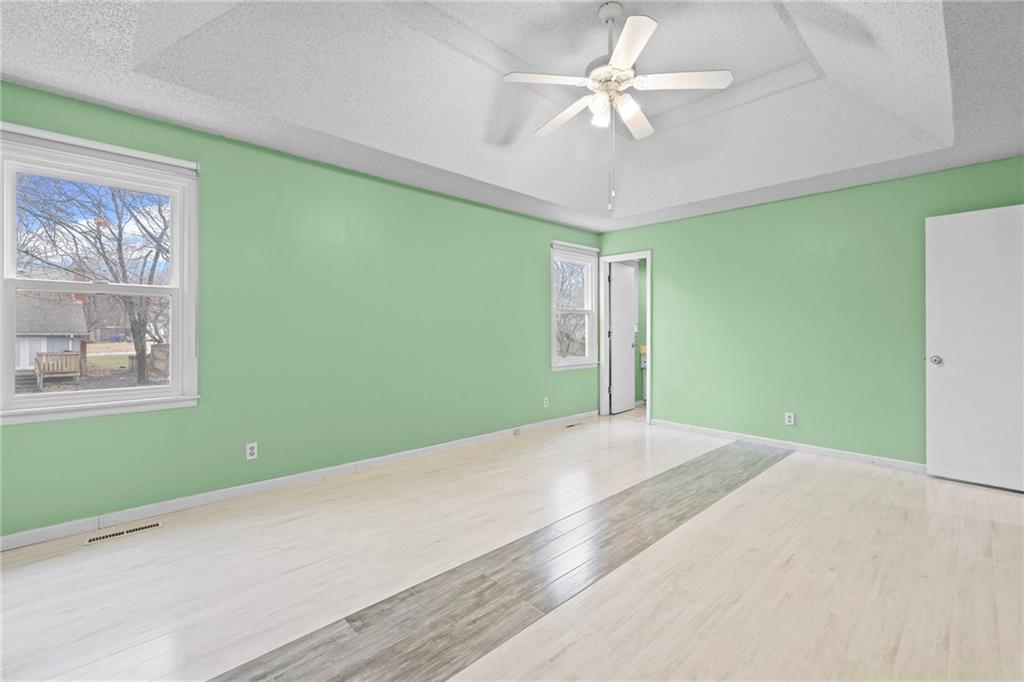 MOVE-IN READY!!!! Charming side/side split level gem nestled in Olathe! Step inside to a bright and spacious main living area bathed in natural light and showcasing luxury vinyl plank flooring. Functional kitchen is well-equipped with white cabinetry and pantry for ample storage and black appliances including range, dishwasher, and built-in microwave. Adjacent dining area for easy entertaining! Upstairs find a primary suite with private en-suite, 3 additional bedrooms and 2nd full bath providing plenty of space for everyone. Walk-out lower level (garage level) has a family room with cozy fireplace and built-ins. Access the spacious patio from here and enjoy time outdoors! Extending the living space is a rec room in the finished basement! This split-level layout creates natural separation between living and sleeping areas, offering both privacy and flexibility. This one is the perfect blend of comfort and value in a fantastic location just minutes to shopping, dining and major highway access! Bring your ideas and make this your own!