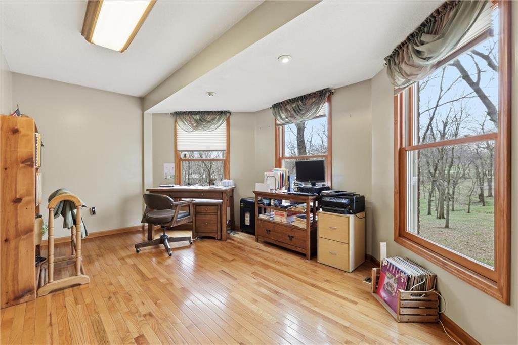 Welcome to 853 NW 1661st Road!!! The moment you pull up to the drive you will see why this is an AMAZING property!! This BEAUTIFUL home sits on 4.39 treed acres with a spring fed pond. This SPACIOUS home offers 5 bedrooms, 4 full baths, office space, NEW roof as of Sept. 2025, fresh interior paint, SUN ROOM, brand new deck, 30 x 30 OUTBUILDING, guest house, whole house GENERATOR and SO MUCH MORE!!! This would be the PERFECT home if you are looking for MULTI GENERATIONAL living. The WALKOUT basement of the main house has 1 bedroom, full bath and a complete kitchen and living room area. Have an RV?? Not a problem as there is space for you to park and even set it up and be fully functional. The guest house is approximately 900 sq. ft and makes for a perfect set up for out of town guests or rental income. The outbuilding will provide extra storage for your hobbies and/or outdoor projects. Conveniently located just minutes from 50 Highway, this property combines country living with easy access for commuting. A rare opportunity with so much to offer!! This one-of-a-kind property offers the perfect blend of refined living, functionality, and privacy. Schedule your showing today!