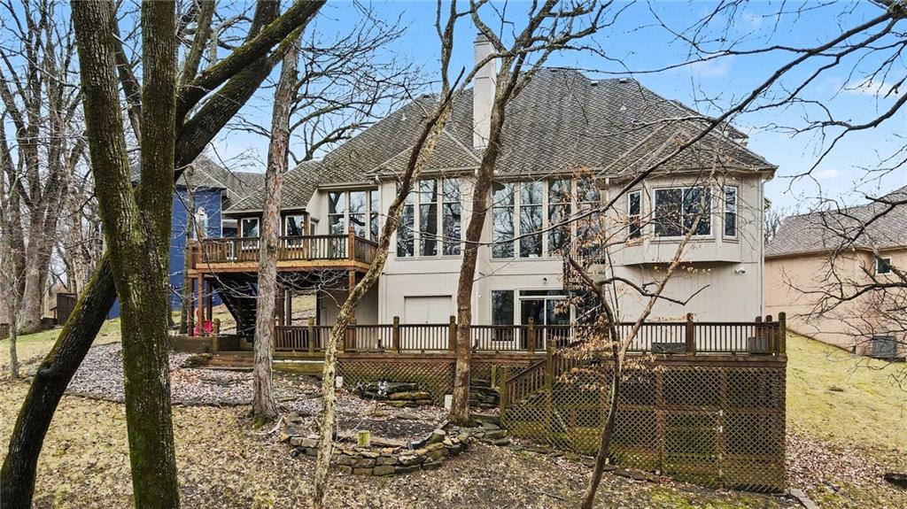Looking for a 4-bedroom, 4.5-bathroom home in a neighborhood community with amenities? 5529 Sleepy Hollow Drive in Riss Lake Neighborhood is what you've been waiting for! This home is located at the end of a quiet cul-de-sac sitting on a 0.81-acre treed lot with no direct neighbor behind, creating a serene and private backyard setting! Greeted into the home in a foyer open to a home office with French doors, formal dining space, and formal living room with large windows overlooking two levels of decks. An updated kitchen with white cabinetry, granite countertops, & stainless-steel appliances including GE profile gas range & oven, microwave, dishwasher, & fridge. Kitchen open to a hearth room w/ see through fireplace , second dining space, and a cozy sunroom with deck access. Main level primary bedroom w/ dual walk-in closets, a door for deck access, & en-suite w/ dual vanities, separate tub, and walk-in shower. Upper-level hosts 3 additional bedrooms and two full baths. Full finished lower-level w/ second kitchen (granite counters, fridge, dishwasher, stove, & microwave) family room, theater room, & large unfinished space ideal for storage or a workshop area. 3 car garage. Neighborhood amenities include three pools, playground, tennis courts, pickleball courts, basketball courts, walking trails, & private stocked lake. Minutes from shopping, restaurants, schools, and downtown Parkville. OPEN HOUSE 3/7/26 (12:00-2:00 PM) and 3/8/26 (1:00-3:00 PM)